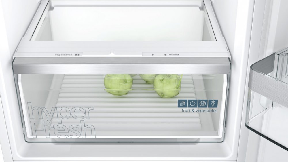 - Přihrádka hyperFresh prodlužuje čerstvost potravin a díky posuvnému voliči úrovně vlhkosti se s ní velmi snadno zachází. Speciální tvar a funkce zaručují ideální prostředí pro ovoce a zeleninu. Výsledkem je lepší kvalita, čerstvost a vynikající chuť.