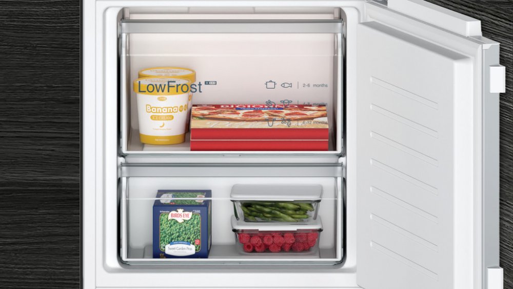 - Pokud se tvoří námraza, zvyšuje se tím spotřeba energie: díky inovativní technologii lowFrost a novému umístění výrobníku chladu, který je zabudovaný po obvodu vnitřního mrazicího prostoru, se ledu tvoří výrazně méně. Odmrazování je rychlejší a pohodlnější v porovnání s konvenčními systémy.