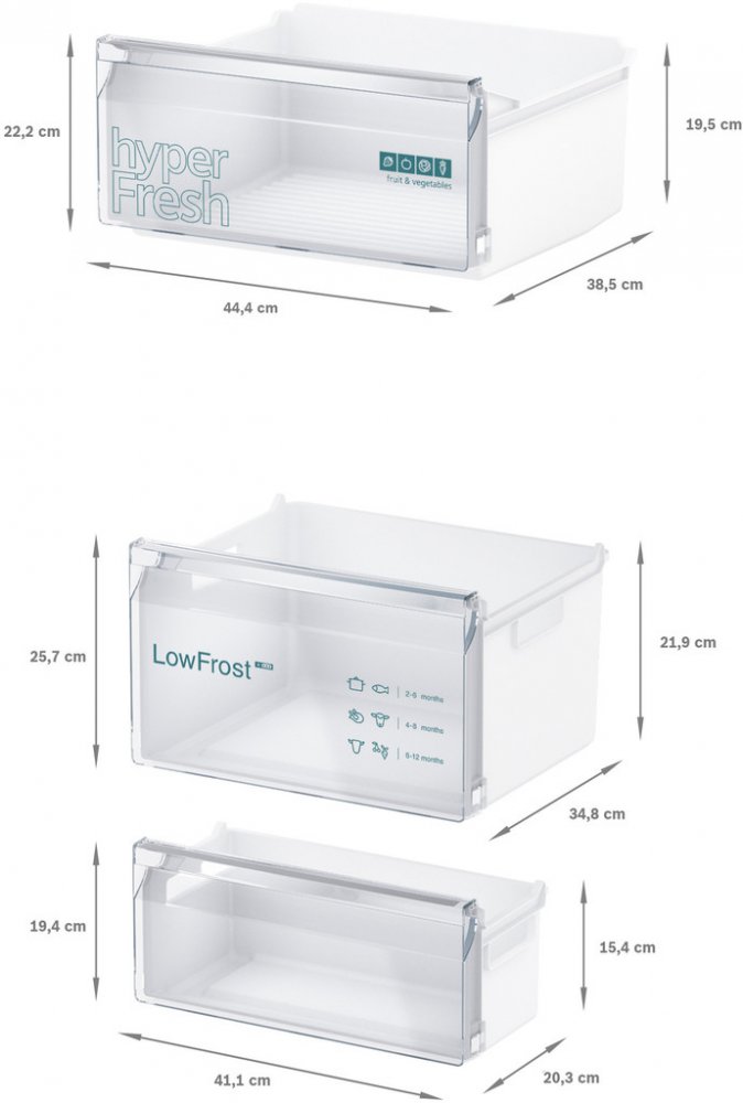 - hyperFresh přihrádka: ovoce a zelenina zůstanou v přihrádce déle čerstvé díky regulátoru vlhkosti.