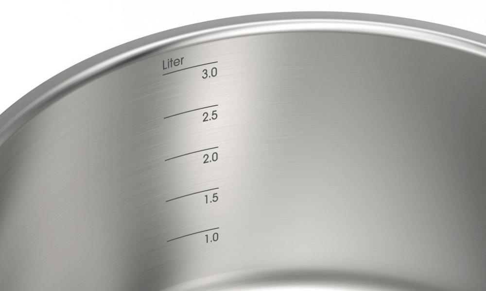 litrová stupnice uvnitř hrnců