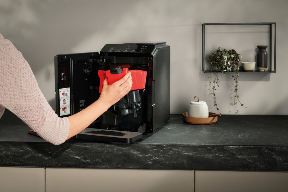 volitelný vodní filtr BRITA: Redukuje obsah vápníku ve vodě, filtruje látky ovlivňující chuť a vůni kávy a prodlužuje životnost spotřebiče