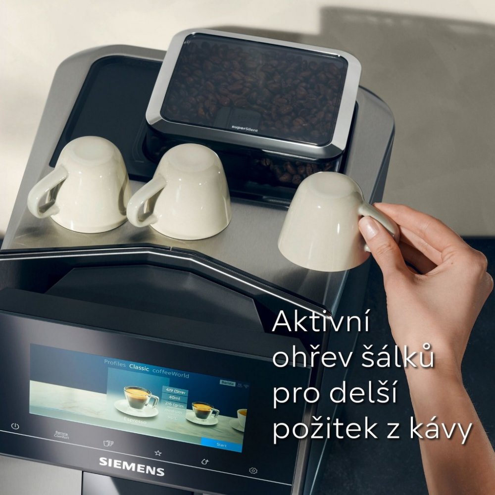 Siemens stříbrná dotykové 29 19 bar 2.3 l 1 m 375 g 700 ml 150 mm keramické 1 6 1500 W 3 11.9 kg 39.2 cm 31.5 cm 47 cm