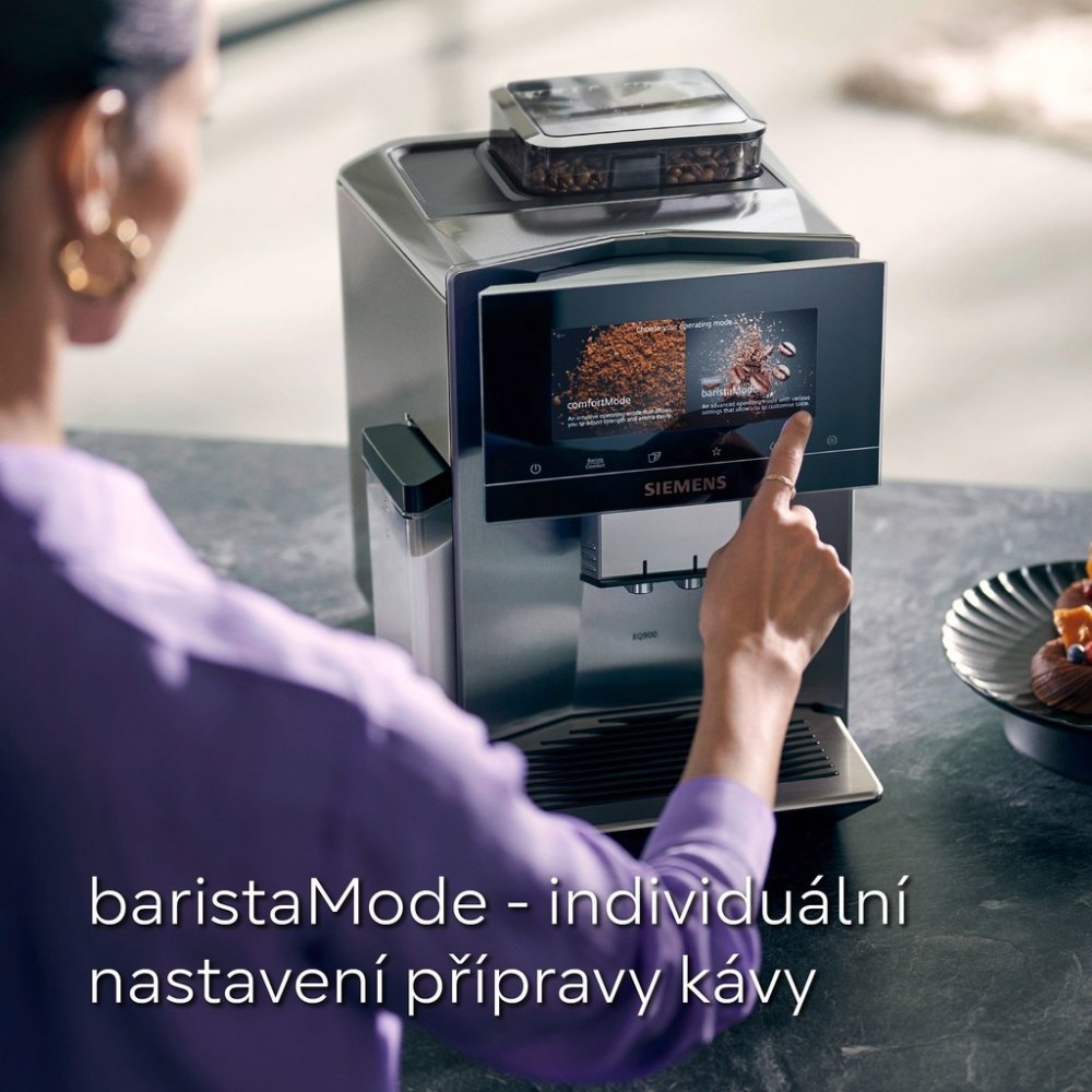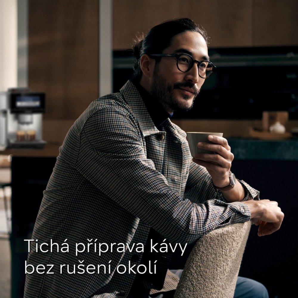 19 bar, Home Connect, iAroma System, 2 provozní režimy "barista" a "komfort", displej, inteligentní nastavení síly nápoje, keramický mlýnek, superSilent, aromaBoost, filtr Brita, nádoba na mléko.