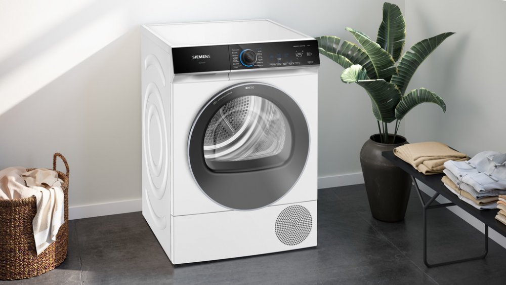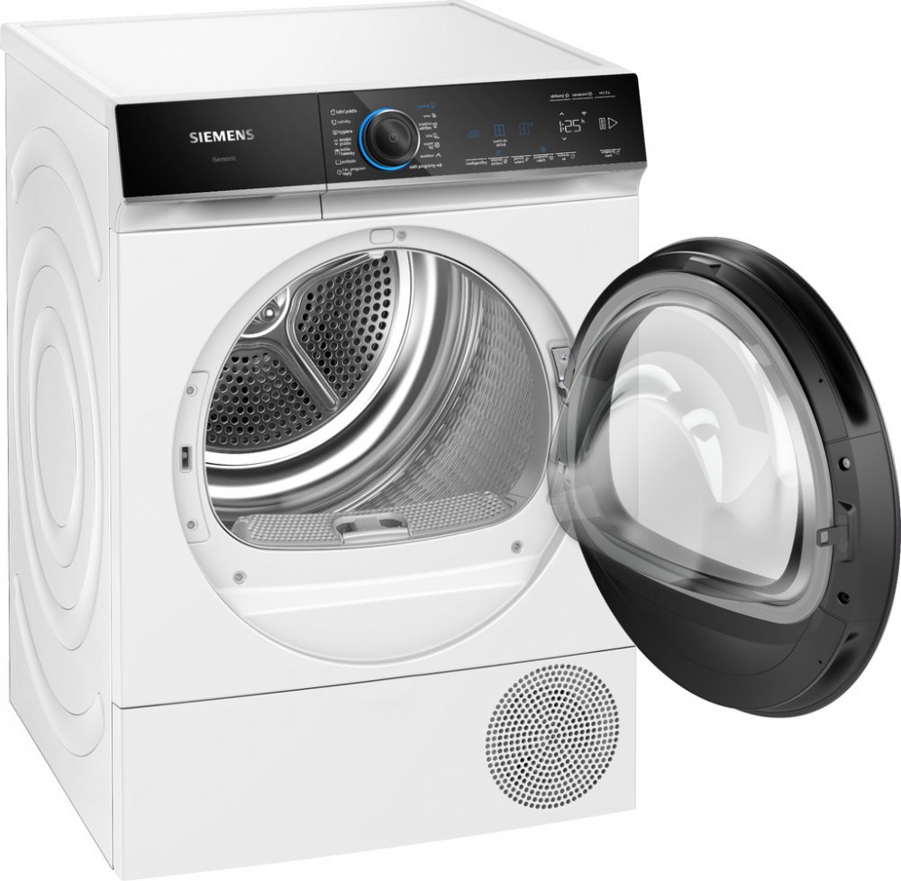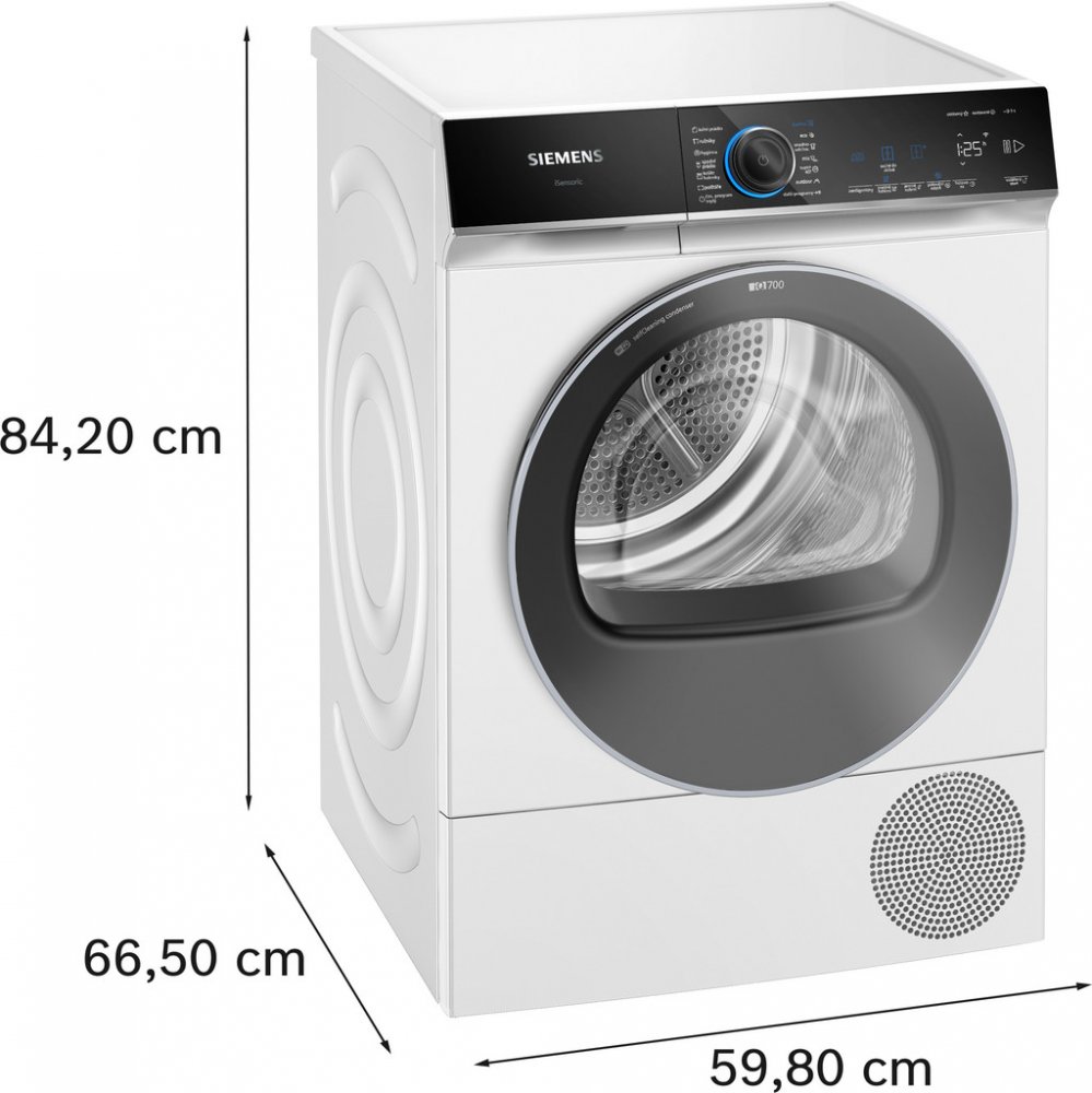 Siemens volně stojící kondenzační 9 kg B pro 3–4 osoby s odvodem do odpadu pro tiché večerní použití (pod 62 dB) 59 dB 92 kWh 92 kWh B A 265 min B otočný knoflík s dotykovým ovládáním 84.2 cm 59.8 cm 61.3 cm 52.6 kg