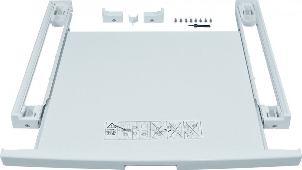 - umožňuje umístit sušičku na předem plněnou pračku plné velikosti (s hloubkou větší než 55 cm)