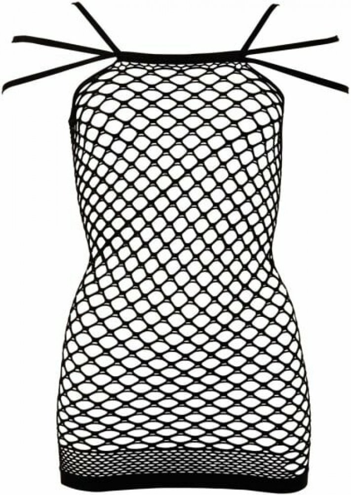 Síťka černé barvy s trojitými ramínky rafinovaně podtrhuje ženské křivky. Ramínka navíc umožňují několik různých způsobů nošení. Spodní lem šatů je zpevněný.