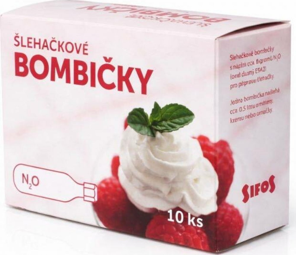 Tradiční české šlehačkové bombičky nabízí kvalitu za rozumnou cenu. Bombičky jsou plněny kapalným potravinářským oxidem dusným N2O - tzv. rajským plynem. Jedna bombička stačí k napěnění 0,5 litru smetany a podobných produktů. Množství plynu v každé bombičce je pečlivě kontrolováno. Výroba domácí šlehačky umožňuje, narozdíl od šlehačky ve spreji, připravit si šlehačku dle chuti, slazenou, neslazeno...