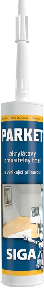 SIGA PRO PARKET je pružný, brousitelný a přetíratelný tmel vysoké kvality na bázi akrylátu pro tmelení prasklin a spojů u parket, dřevěných a laminátových podlah a obkladů, jako spojovací tmel mezi prvky dřevěných podlah a stěn, PVC podlahovin. Zabraňuje vnikání prachu, vody, hmyzu a nečistot do spár. Profesionální aplikace, odolný UV záření.