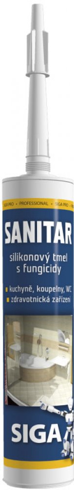 SIGA PRO SANITAR je jednosložkový elastický silikonový tmel acetátového typu vulkanizující vzdušnou vlhkostí s účinným protiplísňovým přídavkem. Je vhodný pro lepení, tmelení