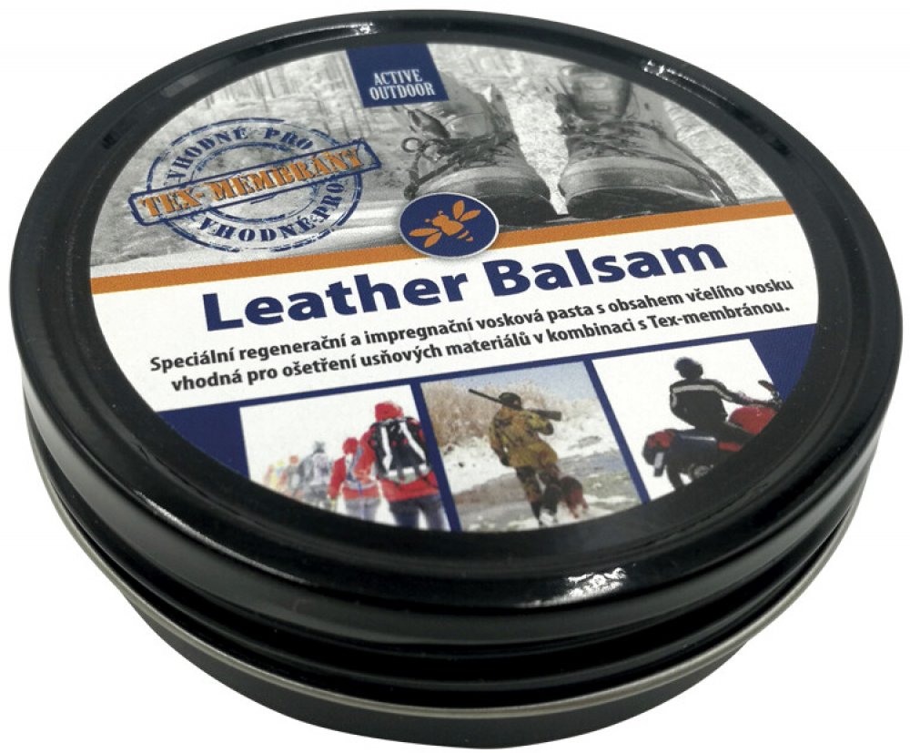 Active Outdoor Leather balsam je speciální regenerační a impregnační vosková pasta na kožené materiály. Změkčuje, zvláčňuje a impregnuje . Leather balsam proniká hluboce mezi usňová vlákna a po nanesení vytváří flexibilní a vodoodpudivý film. Je vhodný pro koženou obuv, která často přichází do styku s vlhkem a vodou. Nesnižuje propustnost pro vodní páry a je proto vhodný pro membrány typu Gore-tex, Sympatex apod. Kůži díky použité kombinaci přírodních vosků a olejů dobře vyživuje, změkčuje a zvláčňuje. Zároveň nezanechává mastný film. Speciální látky obsažené v přípravku pečují o obuv a kožené doplňky po dobu jejich uskladnění tak, aby vypadaly jako nové. Leather balsam dodá materiálu voskovou ochranu proti povětrnostním vlivům. Účinnost se zvyšuje opakovaným použitím.