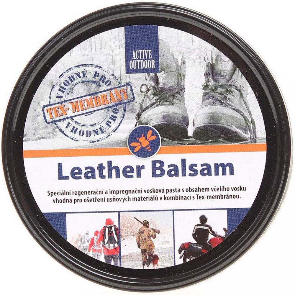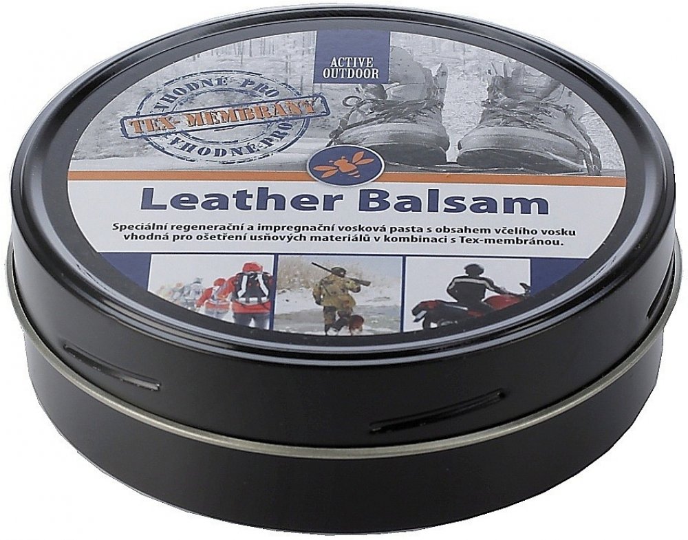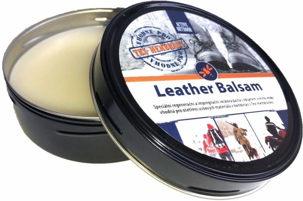 Active Outdoor Leather balsam je speciální regenerační a impregnační vosková pasta na kožené materiály. Změkčuje, zvláčňuje a impregnuje . Leather balsam proniká hluboce mezi usňová vlákna a po nanesení vytváří flexibilní a vodoodpudivý film. Je vhodný pro koženou obuv, která často přichází do styku s vlhkem a vodou. Nesnižuje propustnost pro vodní páry a je proto vhodný pro membrány typu Gore-tex, Sympatex apod. Kůži díky použité kombinaci přírodních vosků a olejů dobře vyživuje, změkčuje a zvláčňuje. Zároveň nezanechává mastný film. Speciální látky obsažené v přípravku pečují o obuv a kožené doplňky po dobu jejich uskladnění tak, aby vypadaly jako nové. Leather balsam dodá materiálu voskovou ochranu proti povětrnostním vlivům. Účinnost se zvyšuje opakovaným použitím.