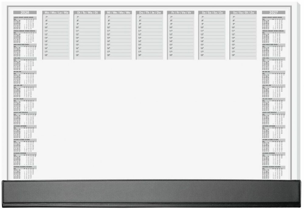 Podložka SIGEL ochrání nejen váš psací stůl, ale také vám poskytne neustálý přehled o týdnech v roce. Použitá gramáž papíru 80 g/m² odpovídá standardnímu kancelářskému papíru, takže na něj můžete psát tužkou, propiskou nebo zvýrazňovači. Podložka je vytvořená tak, abyste měli prostor na psaní, přitom po levé i pravé ruce vidíte rozepsané roky 2026 a 2027. Popisky dní jsou ve čtyřech jazycích, v an...