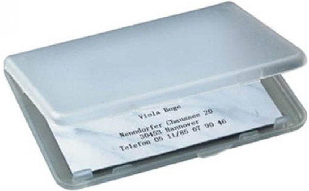 Praktické průhledné pouzdro na vizitky, které je extrémně lehké a ploché – ideální pro lidi, kteří cestují. Udržuje vaše vizitky bezpečně a chráněné