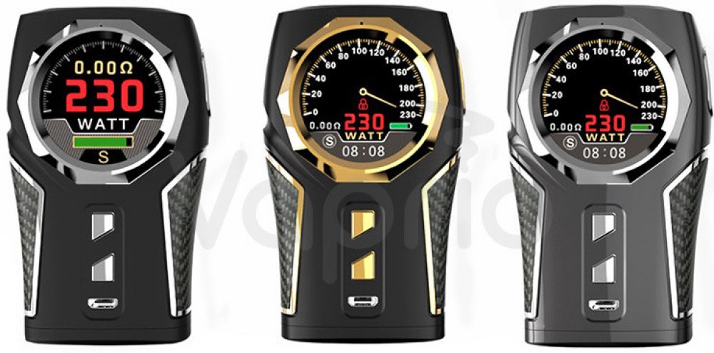 Se skutečně originálním designem přichází Sigelei. Jeho TOP1 mod hned na první pohled upoutá velkým displejem ve tvaru tachometru. Nepřehlédnutelný displej však není to jediné, co toto zařízení nabízí. Po vložení dvou baterií typu 18650 (nejsou součástí balení) za spodní výklopný kryt, je možné dosáhnout až 230W, maximální podporovaný výstupní proud je 38A. Pro nabíjení nebudete potřebovat externí...
