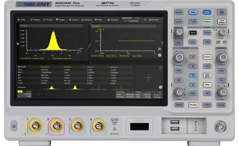 Akční nabídka do 31. 10. 2023, při koupi tohoto přístroje obdržíte zdarma rozšíření pásma na 500 MHz.SIGLENT SDS2354X Plus je čtyřkanálový osciloskop s šířkou pásma do 350 MHz. barevný dotykový TFT displej s úhlopříčkou 10,1" (1024 x 600 px) spouštění a dekódování sériových sběrnic (část za příplat