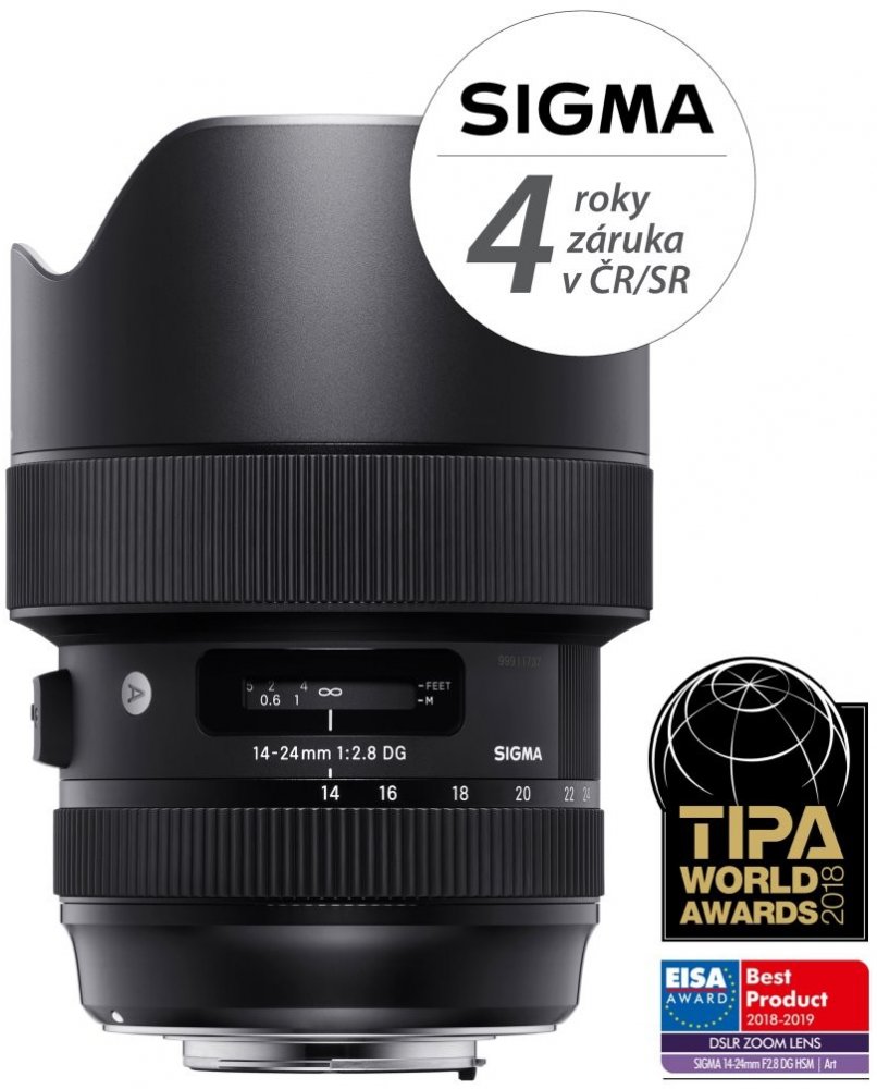 Sigma 14-24mm f/2,8 DG HSM Art pro Nikon - objektiv navržený pro fotoaparáty s rozlišením přes 50 megapixelů. Dosahuje vysoké ostrosti se třemi FLD skleněnými třemi členy, SLD členy a třemi asférickými členy. S téměř nulovým zkreslením a minimální chromatickou aberací, odlesky nebo duchy. Vysoká rychlost i přesnost ostřícího systému umožňuje fotografům zachytit neuvěřitelné zážitky.