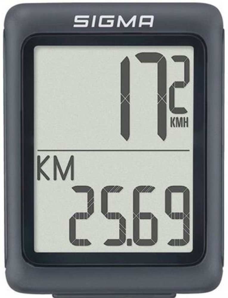 Tento nejmenší cyklocomputer SIGMA je kompaktní a zobrazuje pět nejdůležitějších základních funkcí, které mají cyklisté rádi na očích: rychlost, denní kilometry, celkový počet ujetých kilometrů, čas jízdy a hodiny.