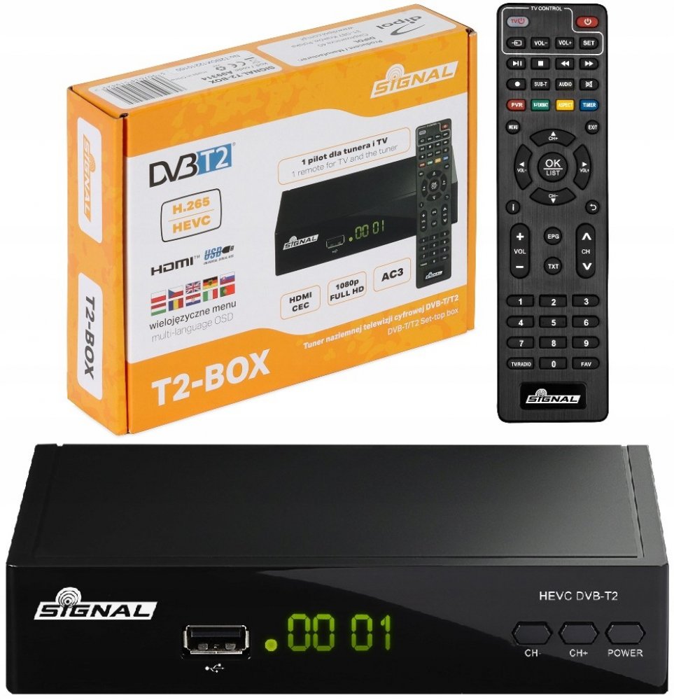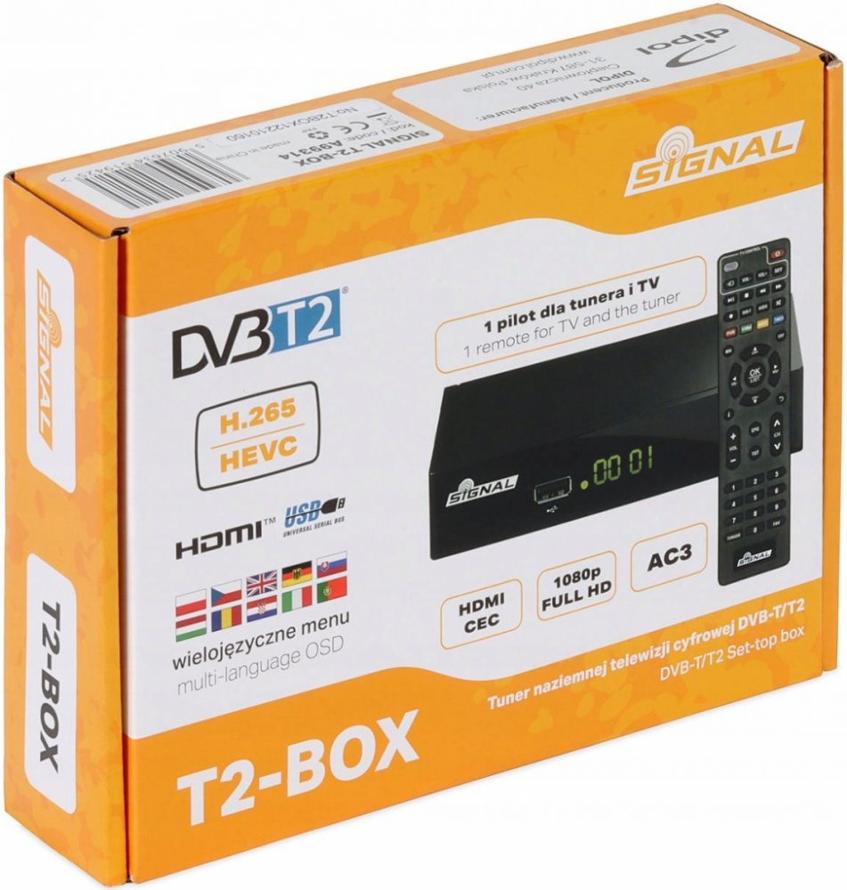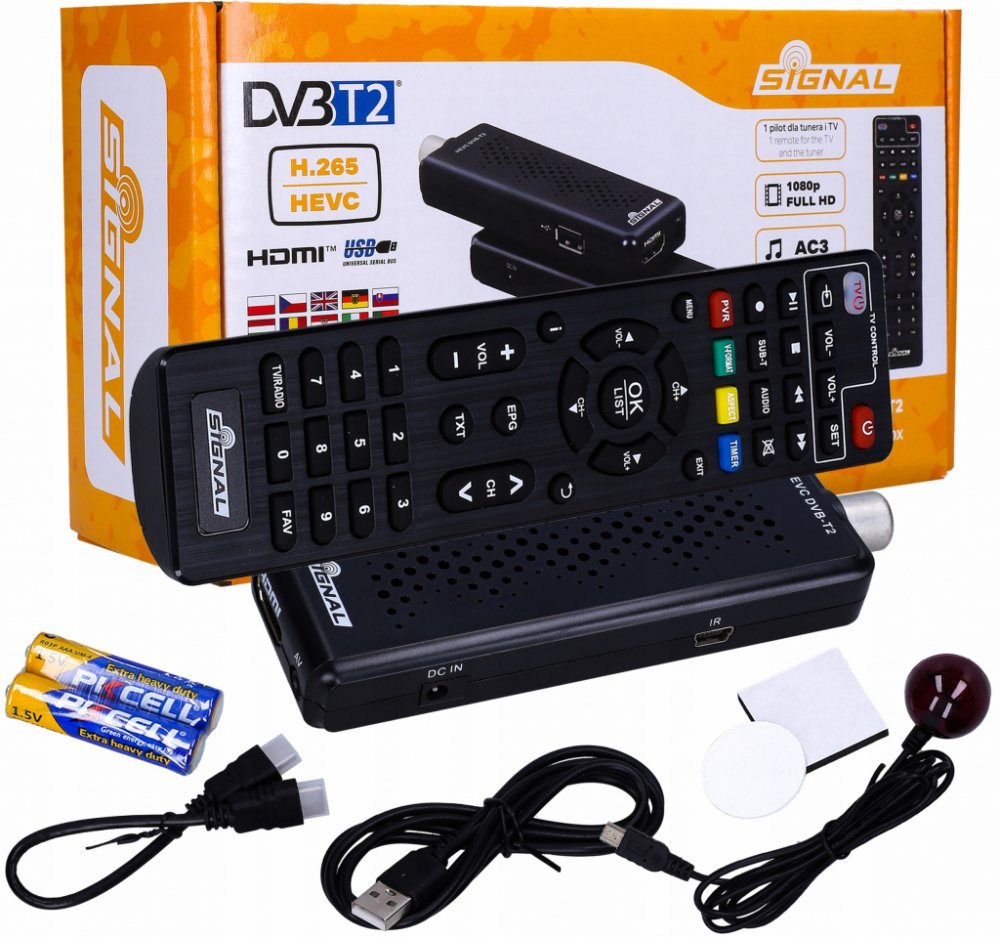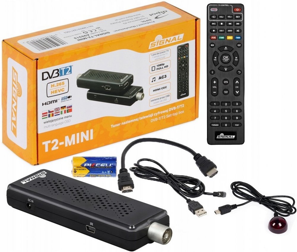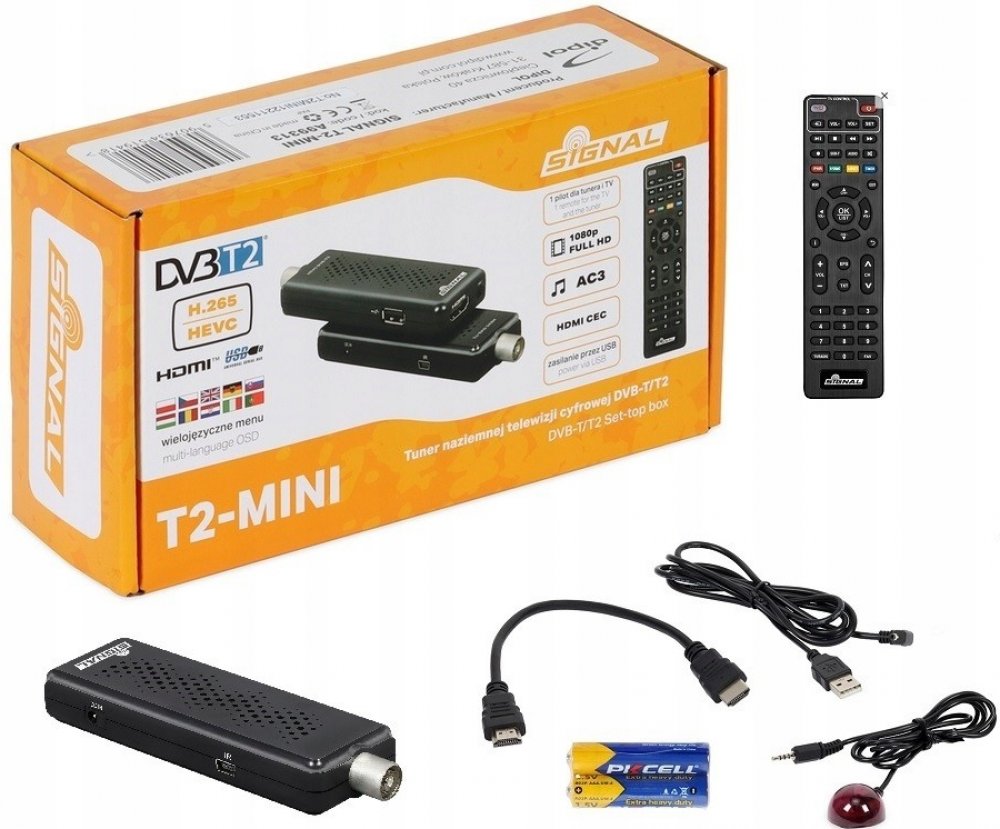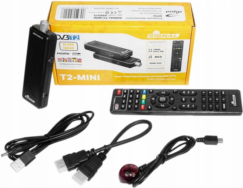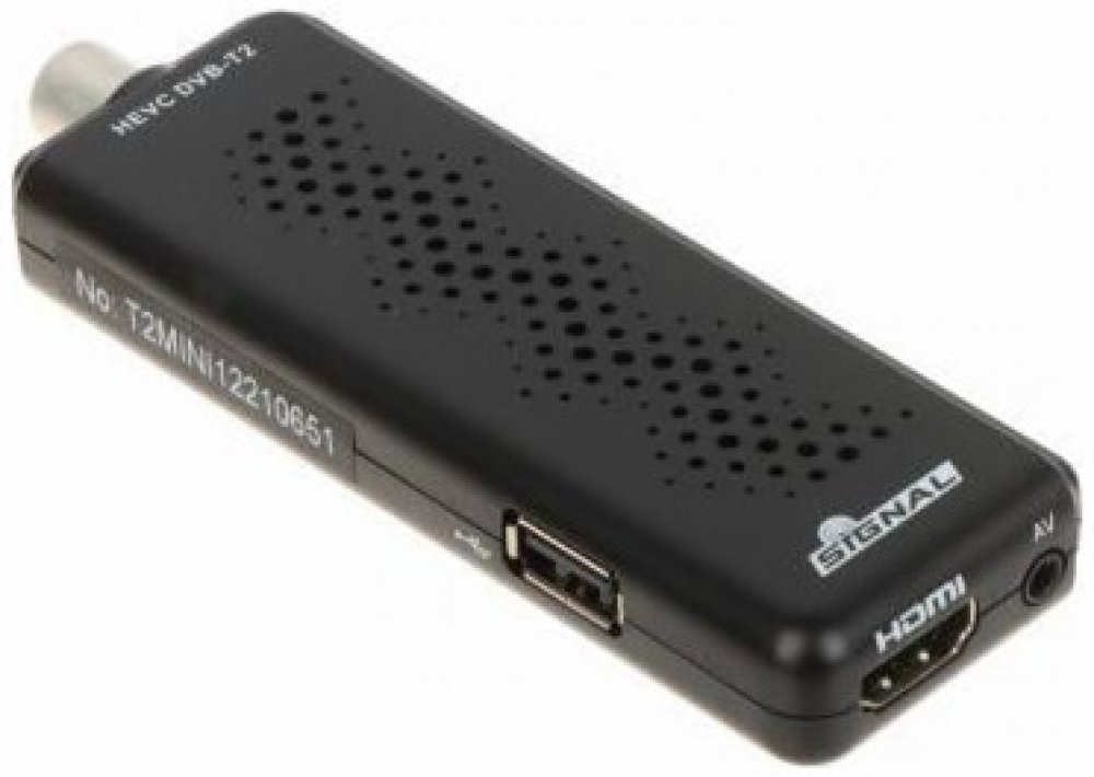 T2-MINI značky Signal je miniaturní tuner DVB-T/T2 určený pro příjem bezplatných pozemních televizních kanálů. Je plně kompatibilní s video kodekem HEVC a audio E-AC-3, takže se bez problémů hodí pro příjem i po změně způsobu kódování na H.265 se zvukem Dolby.