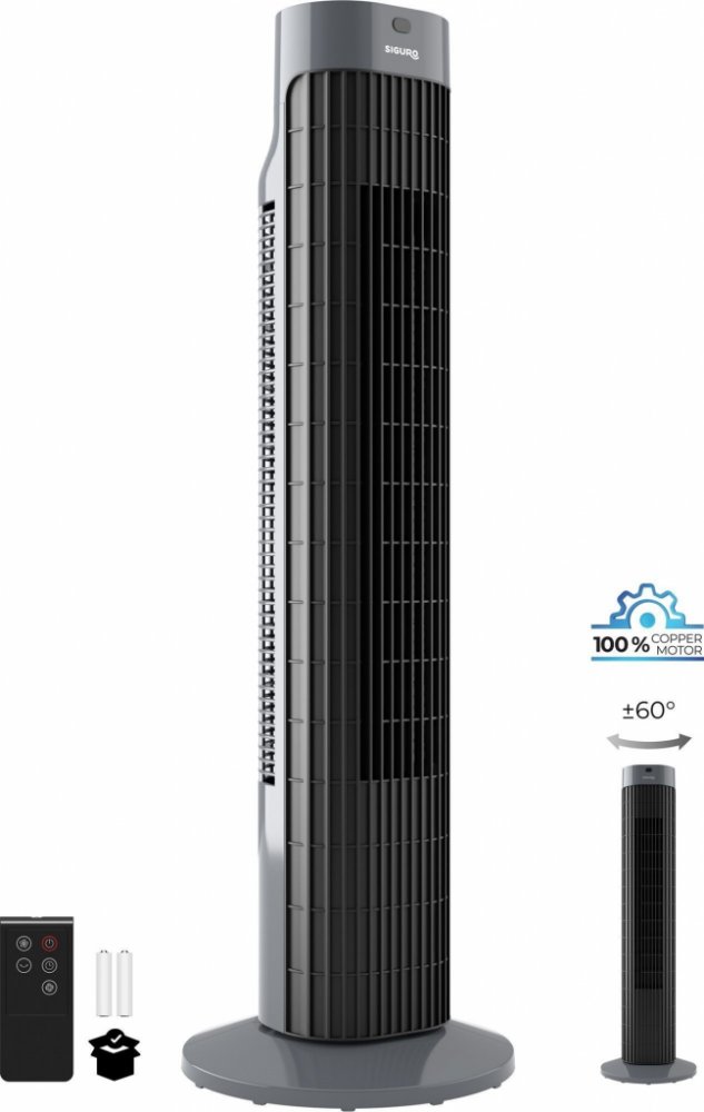 VentilátorSiguro FN-P35Zpříjemněte si horké letní dny a pořiďte si sloupový ventilátor Siguro FN-P35 Velvet Wind, který nabízí horizontální oscilaci, časovač, pohodlné dálkové ovládání, moderní design či velmi kvalitní provedení. Jedná se tak o ideální doplněk domů, kanceláře či na chatu.Horizontální oscilace a časovačSiguro FN-P35 Velvet Wind má dosah až 8 metrů a horizontální oscilaci s rozsahem otáčení ±120°. K dispozici vám budou také tři stupně výkonu a provozní režimy. Výhodou je časovač na 7,5 hodiny, po jehož uplynutí se ventilátor automaticky vypne.ČasovačNastavte si časovač až na 7,5 hodinyVysoká stabilitaDíky velké a těžké základně je ventilátor velmi stabilníDálkové ovládáníOvládejte ventilátor pohodlně z křesla nebo posteleBaterie v baleníDvě AAA baterie do ovladače jsou součástíSafe productPečlivě prověřený produkt je maximálně bezpečnýDenní i noční režimyKromě tří rychlostí foukání (vysoká, střední a nízká) nabízí ventilátor Siguro FN-P35 Velvet Wind také tři režimy...