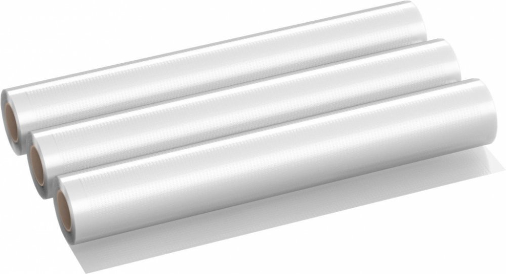 Vakuovací fólie univerzální, pro uchovávání potravin a zajištění jejich delší životnosti, 3D struktura pro snadné odsátí vzduchu, lze použit v mikrovlnné troubě, pro teploty -20 až 110 °C, vhodné na vaření Sous-vide, BPA free, kompatibilní s většinou vakuovaček na trhu, rozměry 20×300cm - 66,33 Kč/ks