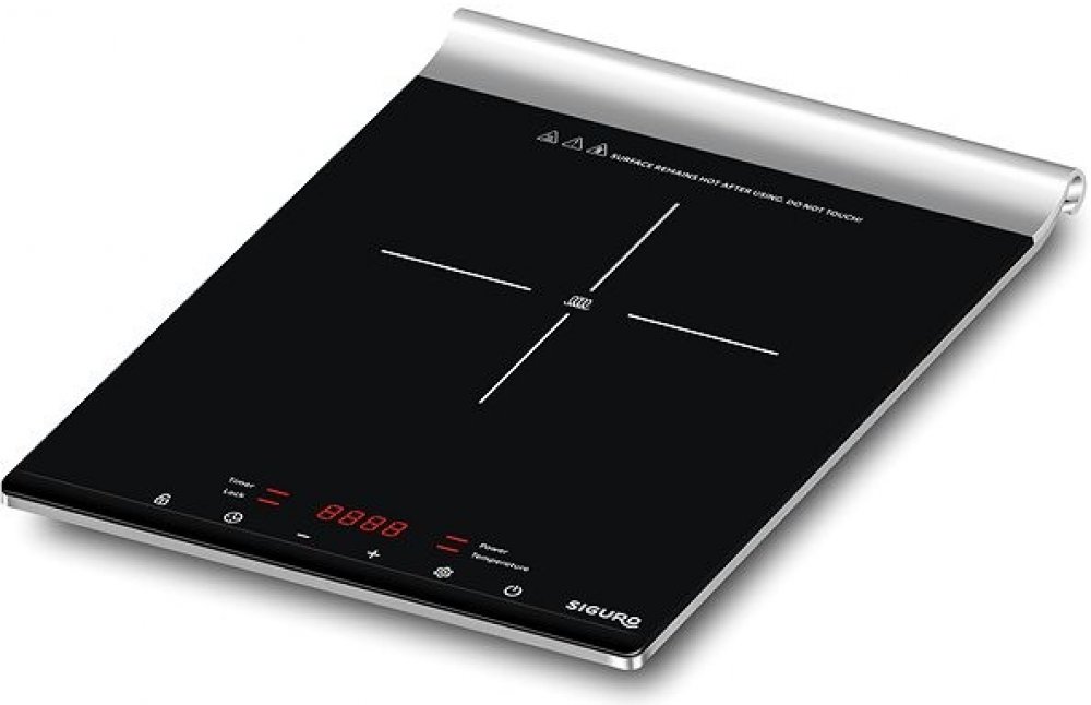 s příkonem 1800 W, 1 plotýnka o průměru 12 - 26 cm, 10 stupňů výkonu, termostat, nastavení teploty v rozsahu 60 - 240 °C, časovač, LCD displej, dotykové ovládání, ochrana proti přehřátí, rychlé nahřátí, automatické vypnutí, světelný indikátor provozu, dětská pojistka, automatická detekce nádobí, automatická detekce problémů, protiskluzové nožičky, délka kabelu 1,5 m, rozměry 30 × 38 × 4,3 cm (SGR-...
