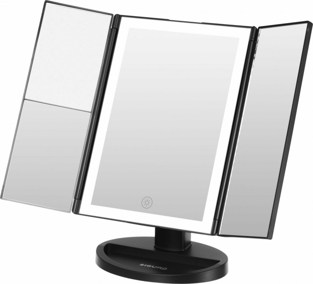 Kosmetické zrcátko Siguro LM-L751B Pure Beauty Black VisionNejen šikovné ruce, ale i kvalitní světlo jsou jedním z hlavních předpokladů při péči o pleť, líčení a dalších kosmetických úpravách. Velké stolní zrcátko Siguro LM-L751B Pure Beauty Black Vision s nastavitelným LED osvětlením splní vaše požadavky do posledního detailu. Díky velké zobrazovací ploše s 1×, 2× a 3× zvětšením či nastavitelnému...