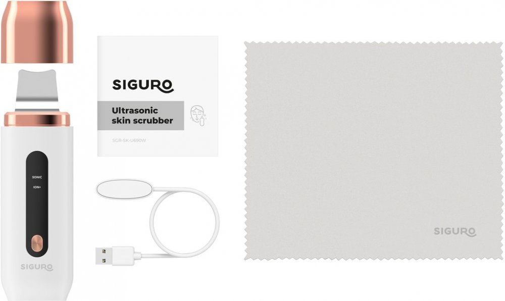 ultrazvuková špachtle umožňuje čištění pleti ultrazvukem, vhodný pro všechny typy pleti, 3 režimy: Ion+ pro hloubkové čištění a odstranění mrtvých buněk, Ion- pro vstřebání živin hlouběji do pokožky a rozjasnění, EMS pro lifting a zpevnění pokožky, integrovaný časovač, voděodolnost IPX5, materiál ABS, bezdrátové použití, kapacita baterie 420mAh, 3 roky záruka (SGR-SK-U690W)