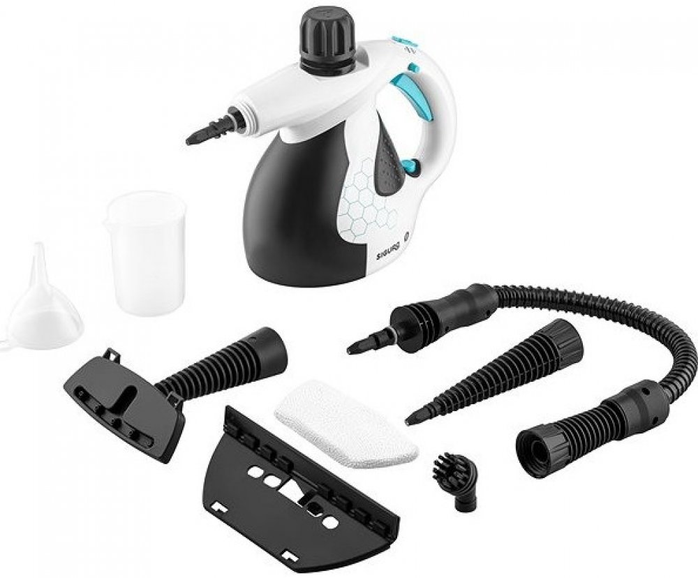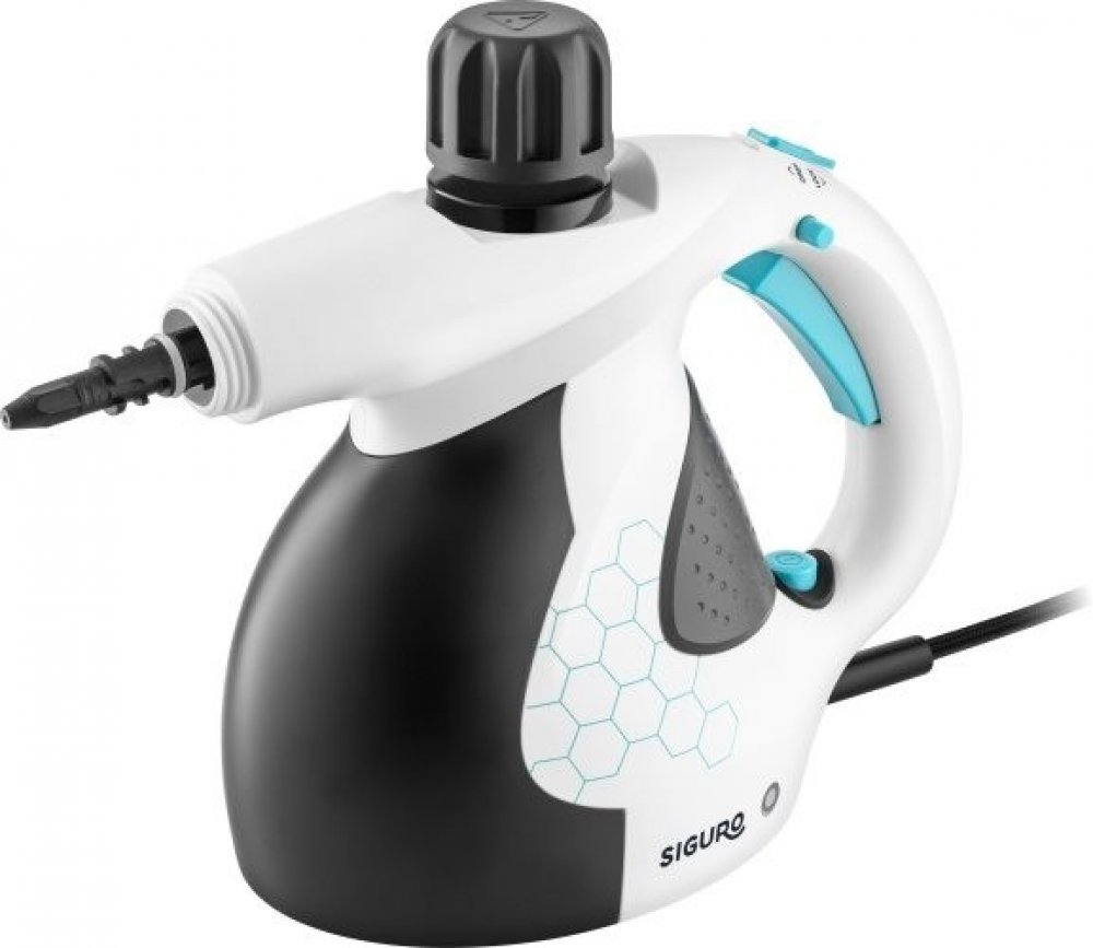 Parní čistič Siguro ST-D400W Eider:Parní čistič Siguro ST-D400W EiderPotrpíte si ve své domácnosti na perfektní čistotu? Pokud ano, rozhodně by mezi čistícími přístroji neměl chybět ruční parní čistič Siguro ST-D400W Eider, který si rychle a hravě poradí s nečistotami v celém domě. Čistič nejčastěji využijete pro efektivní úklid tvrdých ploch, a to zcela bez použití chemie. Součástí balení je celá řada nástavců, které umožňují proniknutí páry i do velmi těžko přístupných míst. Jistě oceníte slušný parní výkon 30 g/min. a tlak páry dosahuje hodnoty 3 bar. Samozřejmostí je velmi snadná obsluha parního čističe, díky čemuž bude výsledkem dokonalá čistota a vaše naprostá spokojenost.Snadné a rychlé použitíObjem zásobníku na vodu činí 350 ml (naplnit lze max. 250 ml) a parní čistič Siguro ST-D400W Eider je k úklidu připravený již za pouhé 4 minuty. Na to, že je přístroj připravený vás upozorní LED kontrolka, která když svítí červeně