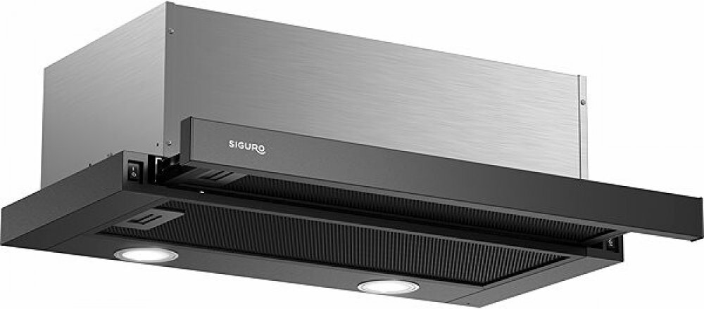 350 m3/hod. 62 dB horní Siguro A výsuvné 59.9 cm 150 mm 7.4 kg mechanické 2 2 45.3 cm 20 cm černé uhlíkové