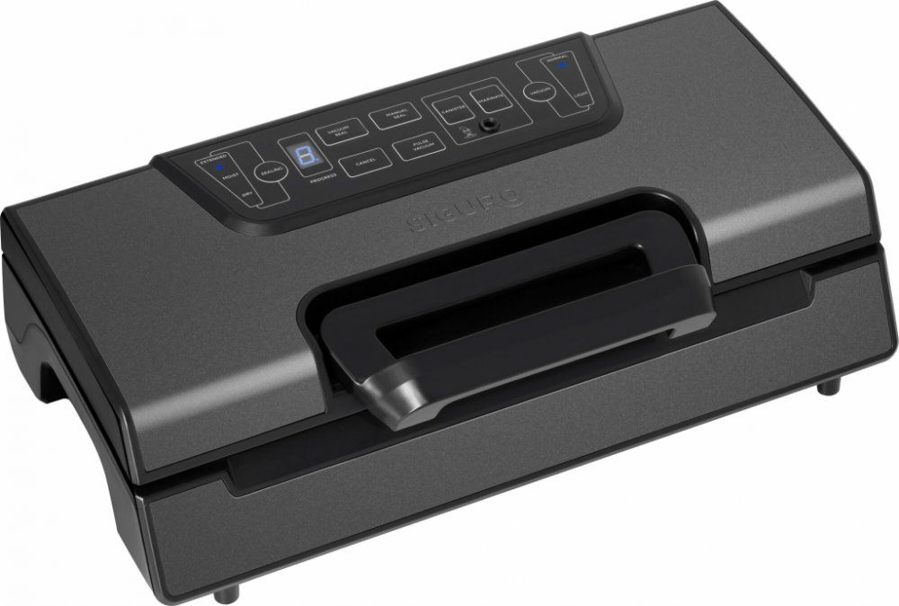 plně automatická se zvýšeným výkonem, vakuování suchých i vlhkých potravin, příkon 130 W, dvojitá pumpa s výkonem 20 l/min, max. šířka sváru 30 cm, integrovaná řezačka fólie, prostor pro fólii, dotykové ovládání, LED indikace, pojistka proti přehřátí, funkce Pulse (manuální odsávání), volba režimu vakuování (automatický / manuální), odsávání vzduchu z externích nádob, ziplock sáčků a marinování, vyjímatelná miska na tekutiny, vhodné pro sous-vide, 1 role fólie a hadička na externí odsávání v bal
