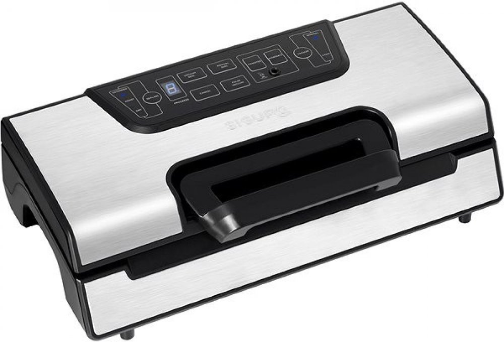 plně automatická se zvýšeným výkonem, příkon 130 W, dvojitá pumpa s výkonem 20 l/min, max. šířka sváru 30 cm, počet fólií v balení 1 role, led indikace, pojistka proti přehřátí, funkce svařování (vlhké potraviny), marinování, vakuování s extra výkonem, funkce gentle (křehké potraviny), automatický provoz, volba režimu vakuování (automatický/manuální), možnost externího odsávání vzduchu, odkapávací miska, nádobka na uniklé tekutiny, koncovka na vakuování ziplock sáčků, vhodné pro sous-vide a odsátí vzduchu, 3 roky záruka (SGR-VS-T950SU)