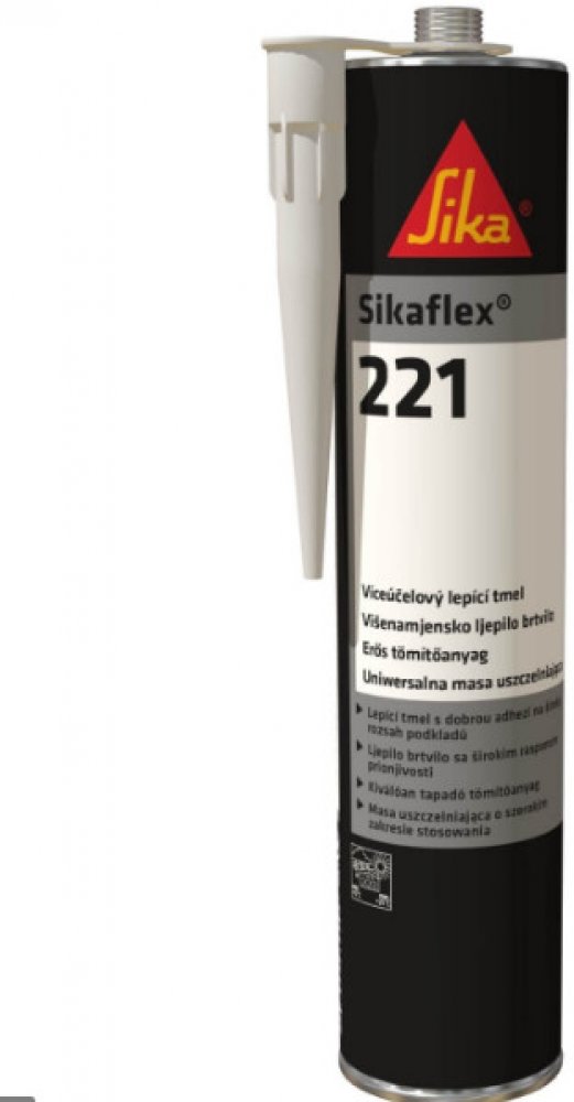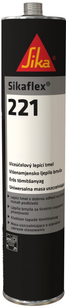 Sikaflex®-221 je univerzální, 1komponentní polyuretanový tmel s vysokou přilnavostí k široké škále podkladů bez nutnosti použití primeru. Vytvrzuje působením vlhkosti vzduchu a po vytvrzení vytváří elastický, odolný spoj. Je ideální pro těsnění a lepení v interiéru i exteriéru v různých průmyslových odvětvích – od dopravy přes výrobu karavanů až po obecné konstrukce.