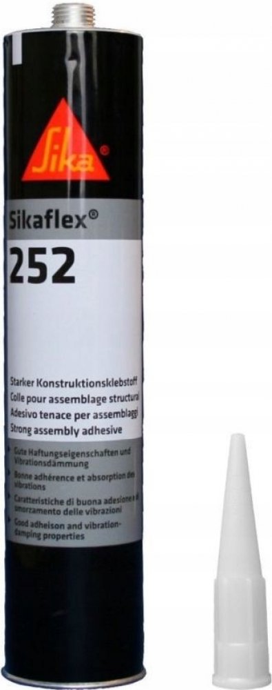 Sikaflex-252 je elastické jednosložkové polyuretanové lepidlo speciálně určené pro lepení velkých komponentů při montáži vozidla. Je vhodné pro lepení lakovaných a pokovených povrchů, GRP, keramických materiálů a plastů.