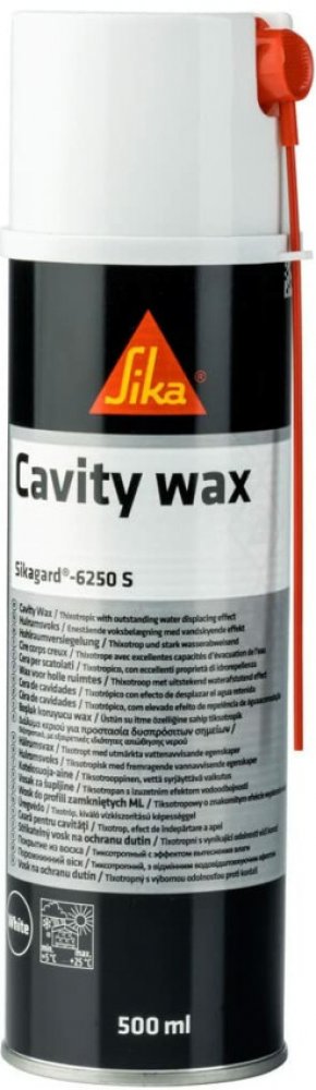Sikagard 6250 S Cavity wax Spray 500ml. Doporučujeme přiobjednání Sika flexibilní prodlužovací hadičky s tryskou. SikaGard-6250 S 500ml Spray - stříkatelný vosk na antikorozní ochranu dutin bez rozpouštědel a aromátů technická data: chemická báze vosk s inhibitory koroze bez rozpouštědel barva mléčně transparentní mechanismus vytvrzení schnutím hustota (kapalina) (ISO 12185) ca 0,87 kg/l obsah pe...