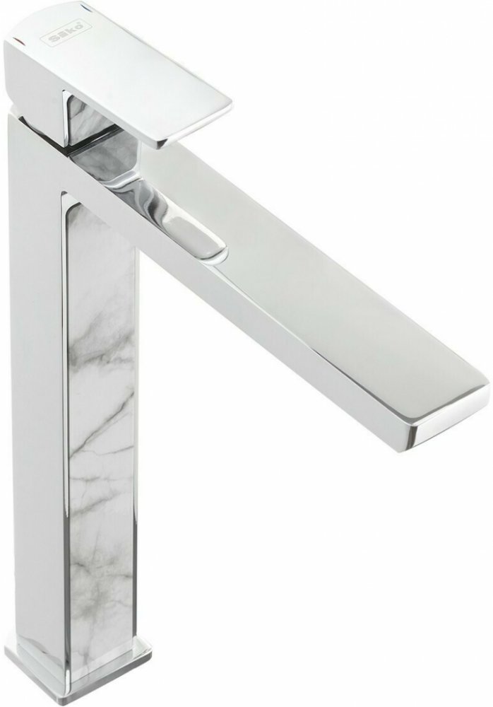SIKO páková stojánková vysoká umyvadlová baterie bez výpusti. V barevném provedení dekoru bílý mramor