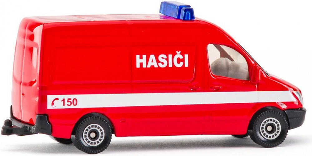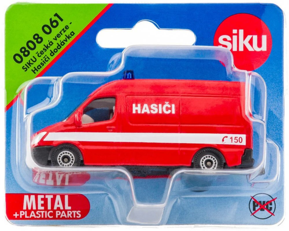 SIKU 0808 - Česká verze červené hasičské dodávky s nápisem "Hasiči". Kvalitně zpracovaný model z kovu a plastu.