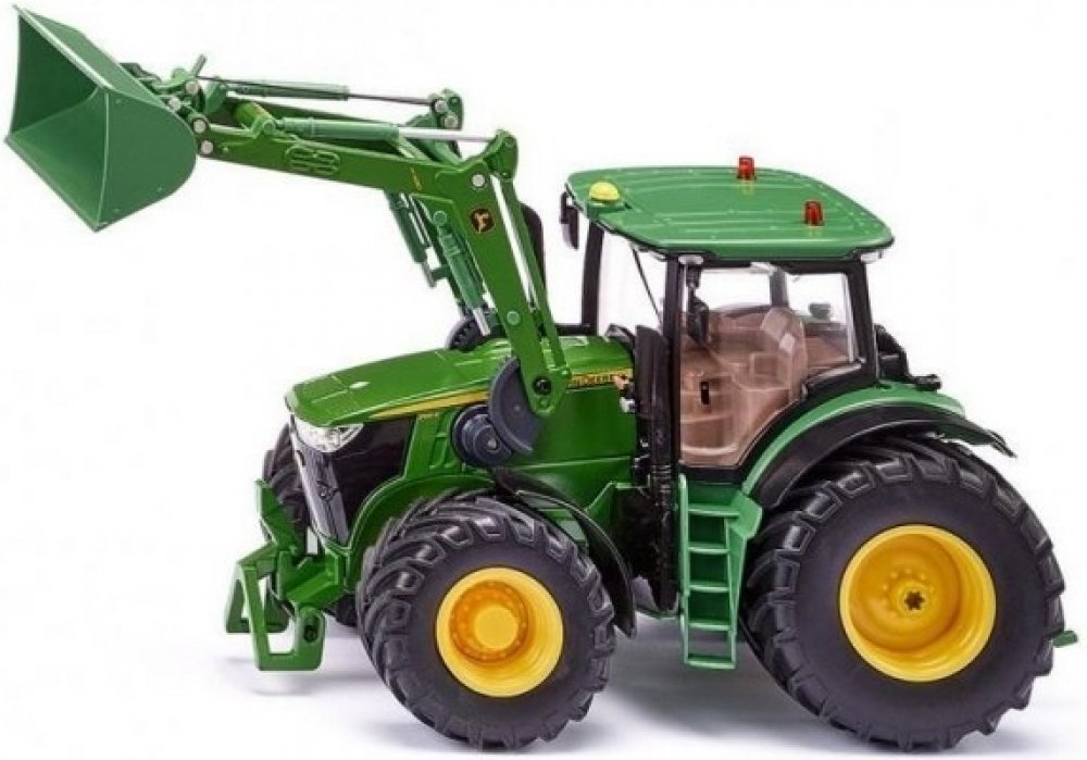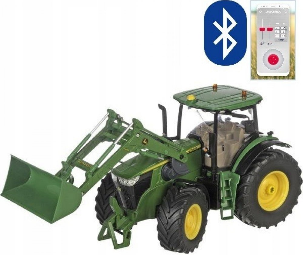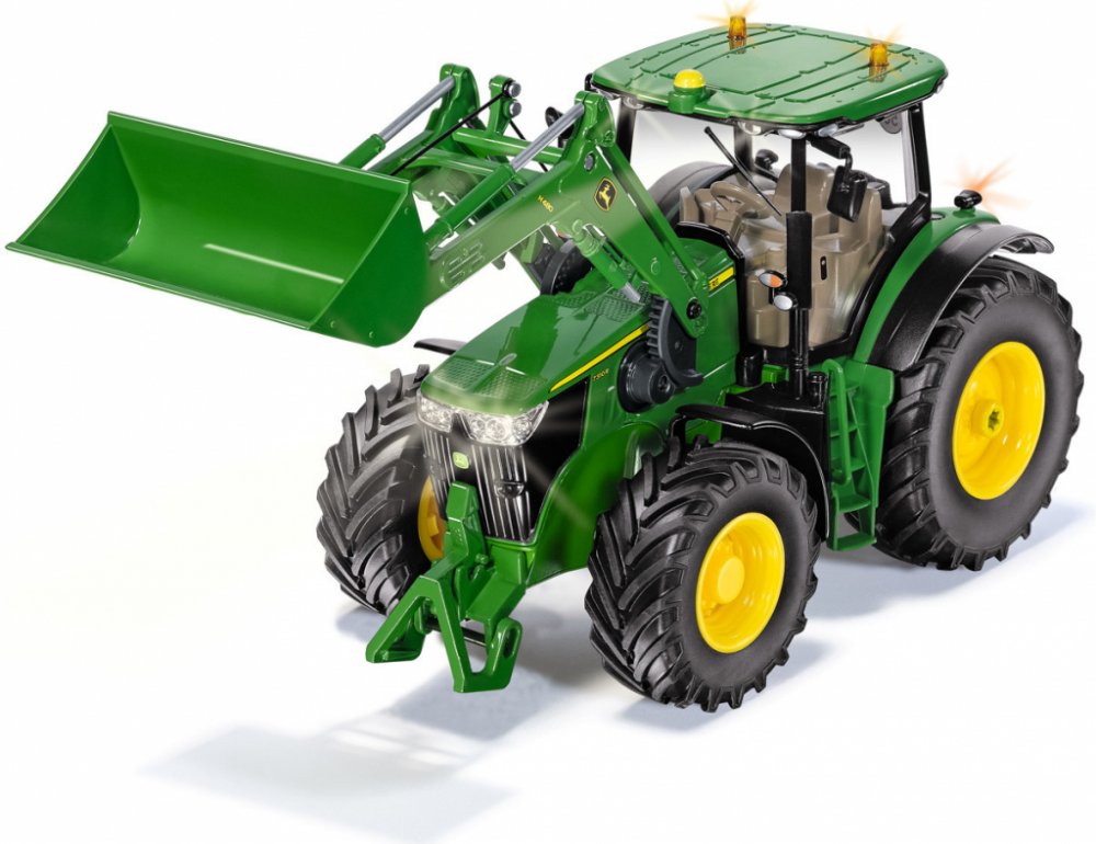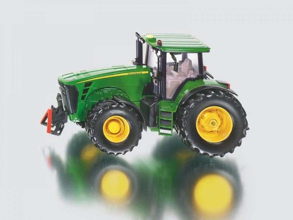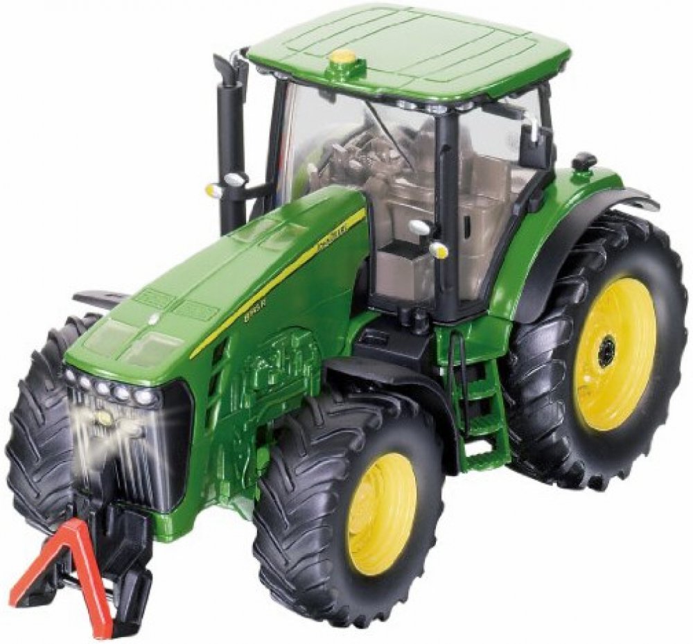 Kvalitní kovový traktor John Deere 8345R s dálkovým ovladačem. Nové a vylepšené ovládání usnadňuje přesné řízení a manévrování. S tímto modelem lze použít spoustu doplňků s řady SIKU Farmer 1:32. Traktor má 2 motory. Stávající rádiové komponenty využívající vlnovou délku 2,4 GHz. Stabilní a vysoce kvalitní traktory vyrobené z tlakově litého kovu a plastu jsou snadno ovladatelné s nově vyvinutým modulem rádiového ovládání. Světlo vpředu a vzadu je během provozu trvale zapnuto. V pohotovostním režimu, tj. Po zapnutí modelu a před připojením k rádiovému řídícímu modulu blikající kontrolka signalizuje, že model je připraven ke spuštění. Model je napájen třemi standardními bateriemi „AAA“. Lze také použít dobíjecí baterie stejného typu. Pokud baterie během provozu klesnou pod určitou úroveň, kontrolka rychle bliká, což značí, že baterie budou brzy vybité. Rádiová řídicí jednotka napájí také dvě stejné baterie. U těchto modelů lze použít všechny přívěsy a spojovací zařízení SIKU Farmer32 pro přední a zadní spojku. Datová zásuvka integrovaná v zadní části traktorů usnadňuje použití modelů příslušenství Control, jako jsou přívěsy, vířivé hrábě a pluhy.
