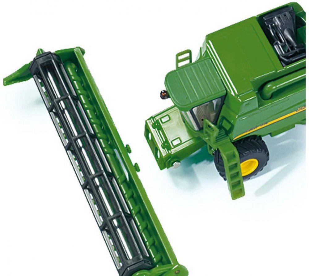 Kovový model gigantického kombajnu John Deere 9680i v měřítku 1:87. Přední žací lišta je výškově nastavitelná a odpojitelná. Rameno vyprazdňovacího šneku je otočné. Gumové pneumatiky. Vhodné pro hraní i sběratelství. Kvalitní zpracování z kovu a plastu.