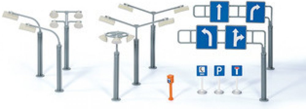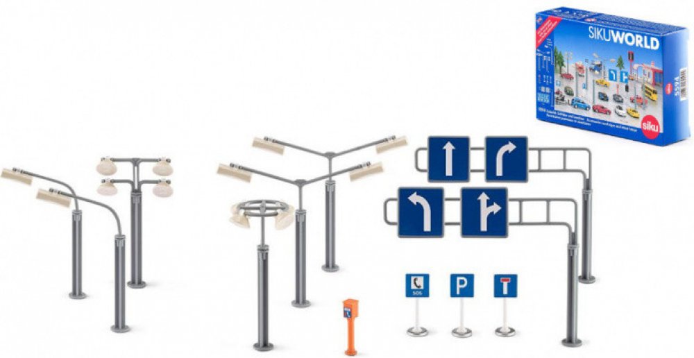 Dostatek světla je velmi důležitý pro bezpečnost dopravy, stejně jako dopravní značky. Součástí sady doplňků pro SIKUWORLD jsou dopravní značky na dálnici i parkoviště spolu s osvětlením a dalšími značkami. Sada obsahuje 12 dílků.