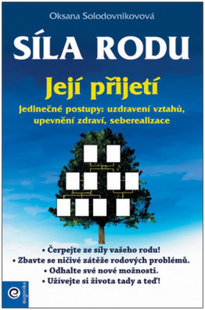 Publikace: Síla rodu - její přijetí - Solodovnikovová Oksana. Málokdo si uvědomuje, že neštěstí, nemoci, nehody a konflikty se často opakují po celé generace, a právě v tom často spočívá problém. Nejúčinněji můžeme pomoci sobě i své rodině či blízkým, jestliže nahlédneme do historie našeho rodu. Kořeny toho, co se s námi odehrává, sahají do životů našich rodičů a prarodičů. Autorka je odbornice s mnohaletými zkušenostmi. Pomůže vám dosáhnout štěstí tím, že odhalí váš rodový program a nově jej uspořádá. Hodně prostoru se zde věnuje rozboru vztahů muže a ženy, od hledání partnera či milostných vztahů přes manželství až po rodičovství. Publikace: Síla rodu - její přijetí - Solodovnikovová Oksana.