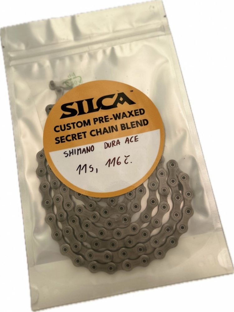 "Řetěz pro 12-ti rychlostní systémy Shimano XTR/Dura Ace, který je zbavený konzervantu z výroby a voskovaný technologií Silca Secret Chain blend – horká lázeň.