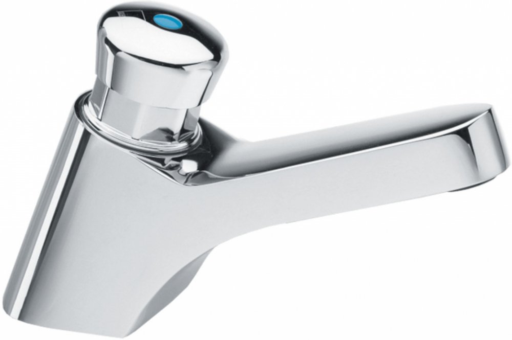 Samouzavírací stojánkový ventil na umyvadlo s časovým spínačem (bez regulátoru teploty AC950). Používat můžete buď studenou vodu nebo musíte použít regulátor teploty AC950, jímž nastavíte požadovanou teplotu vody na výstupu.