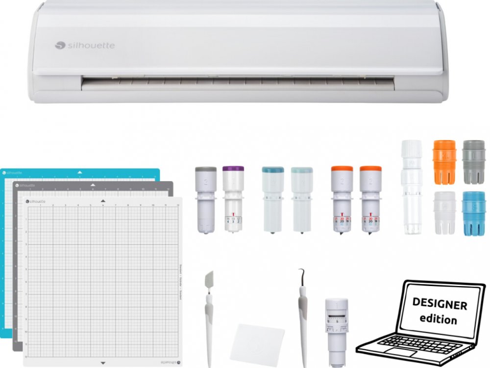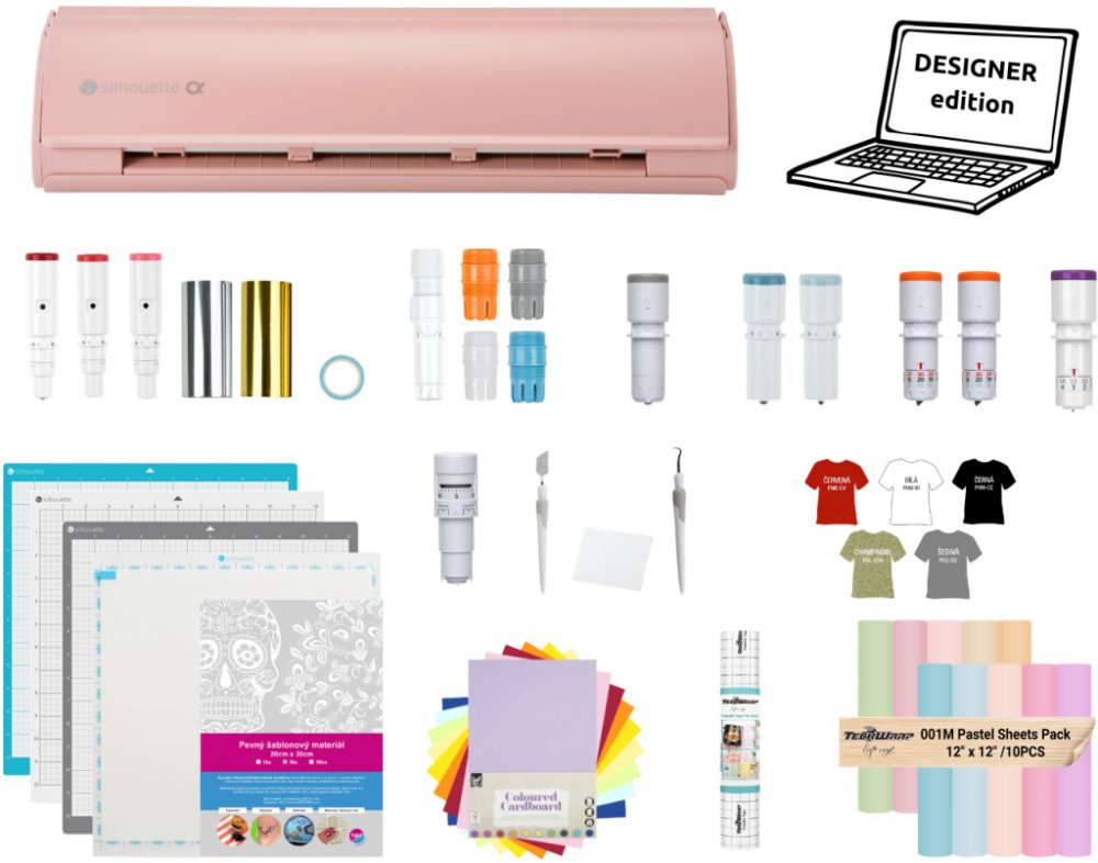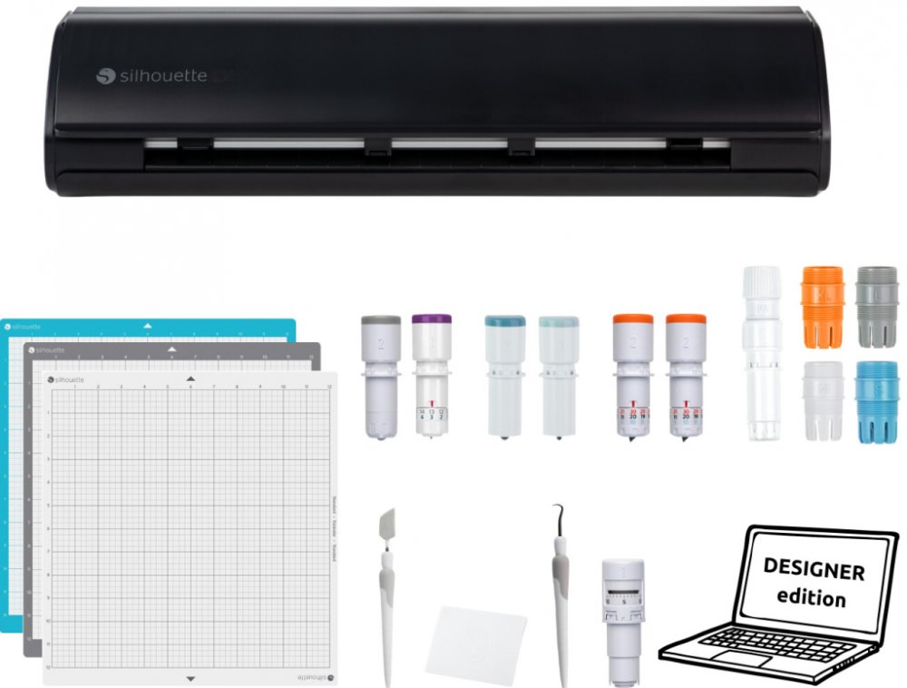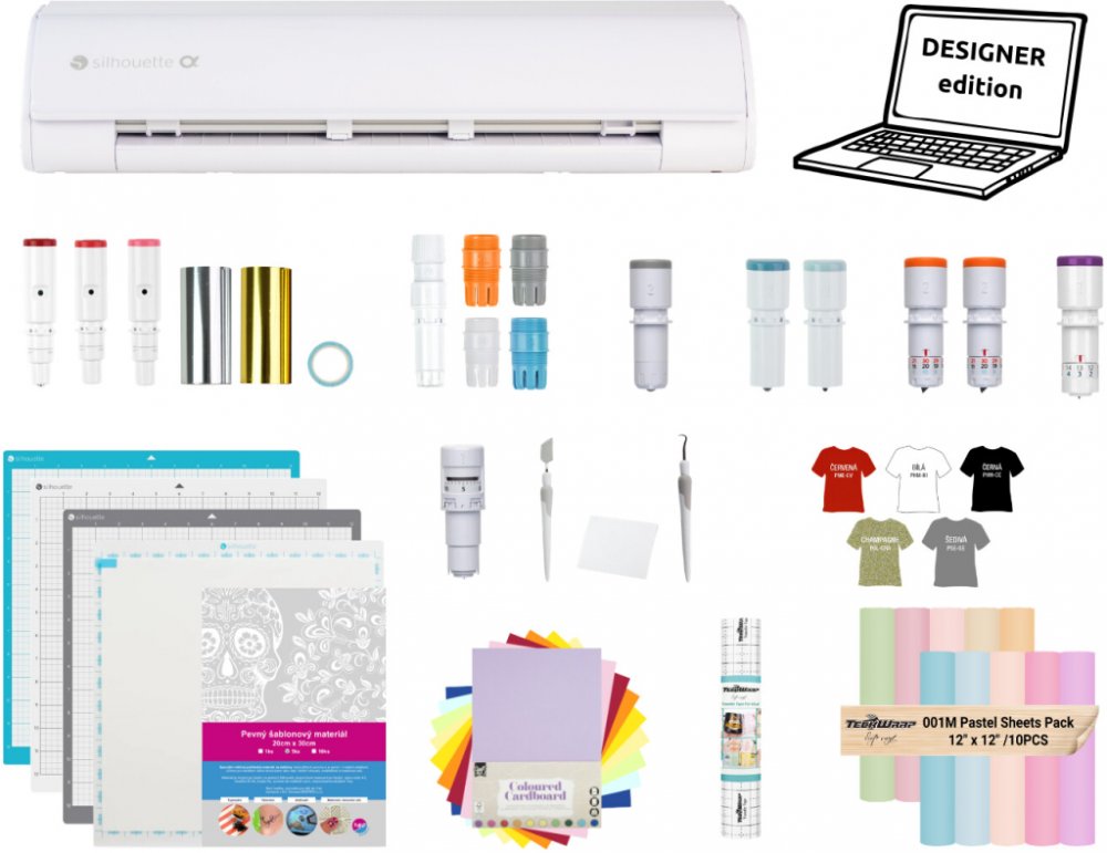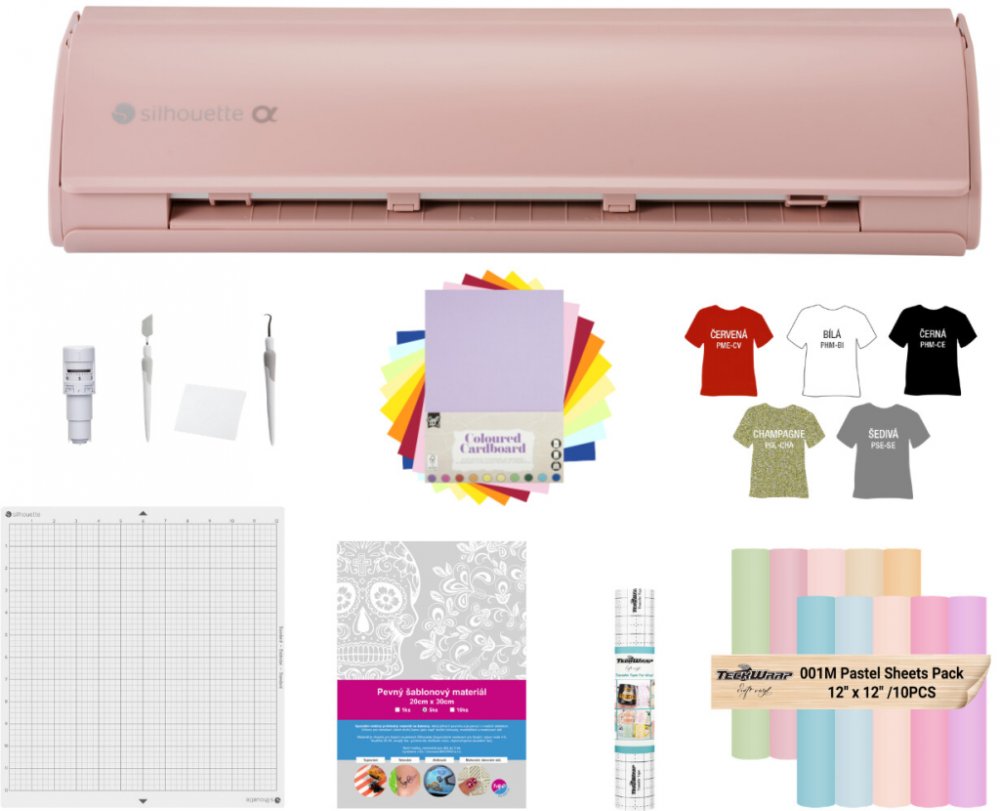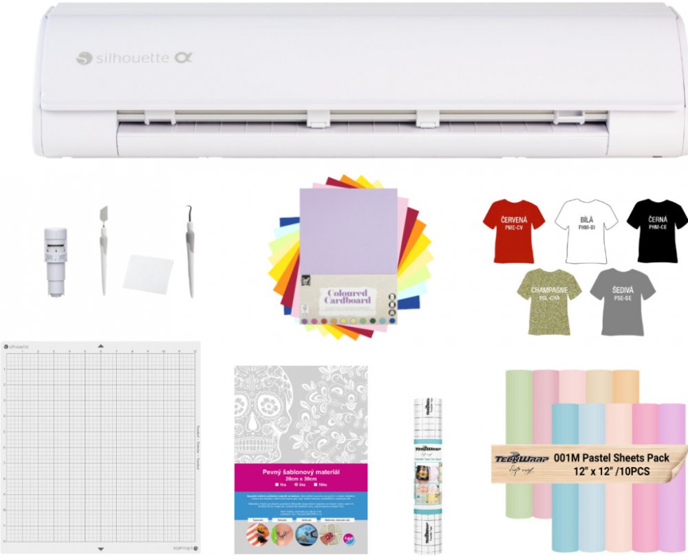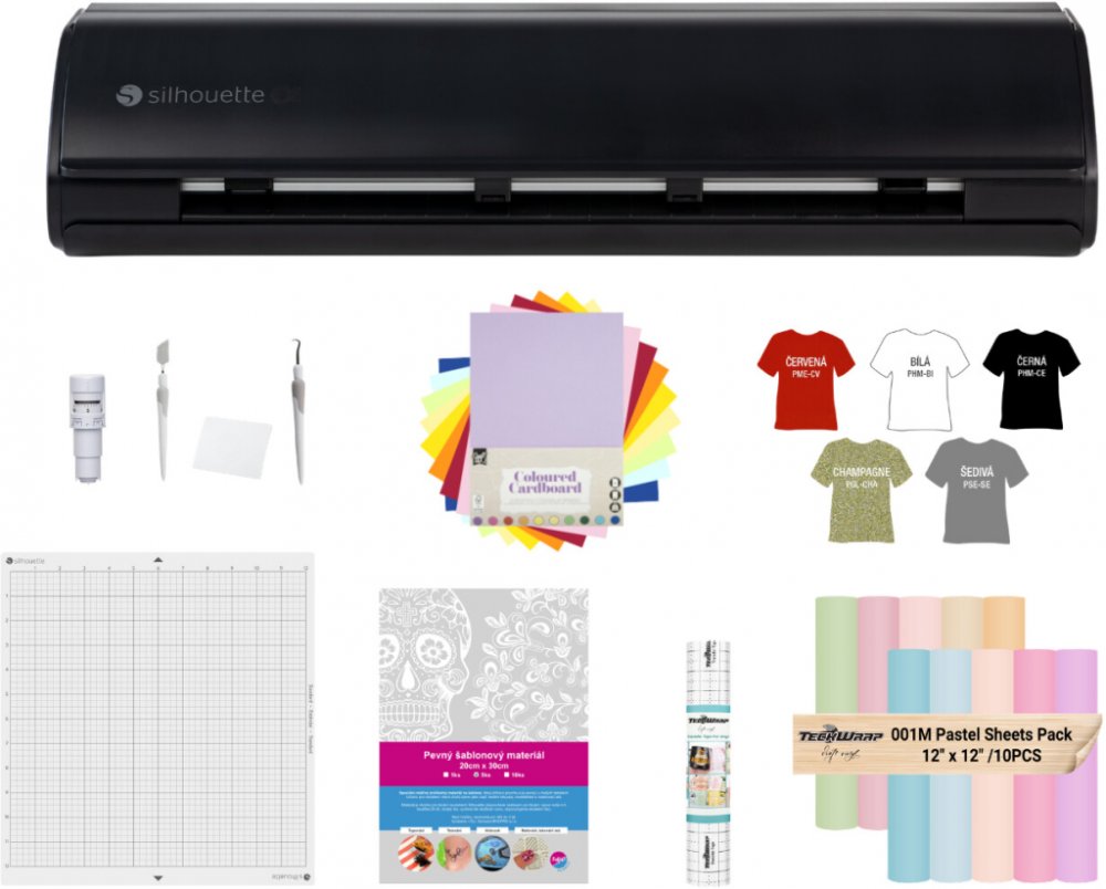 - Černý řezací plotr Silhouette Cameo5 Alpha - v balení automatický nůž a řezací podložka 30x30cm standard lepivosti