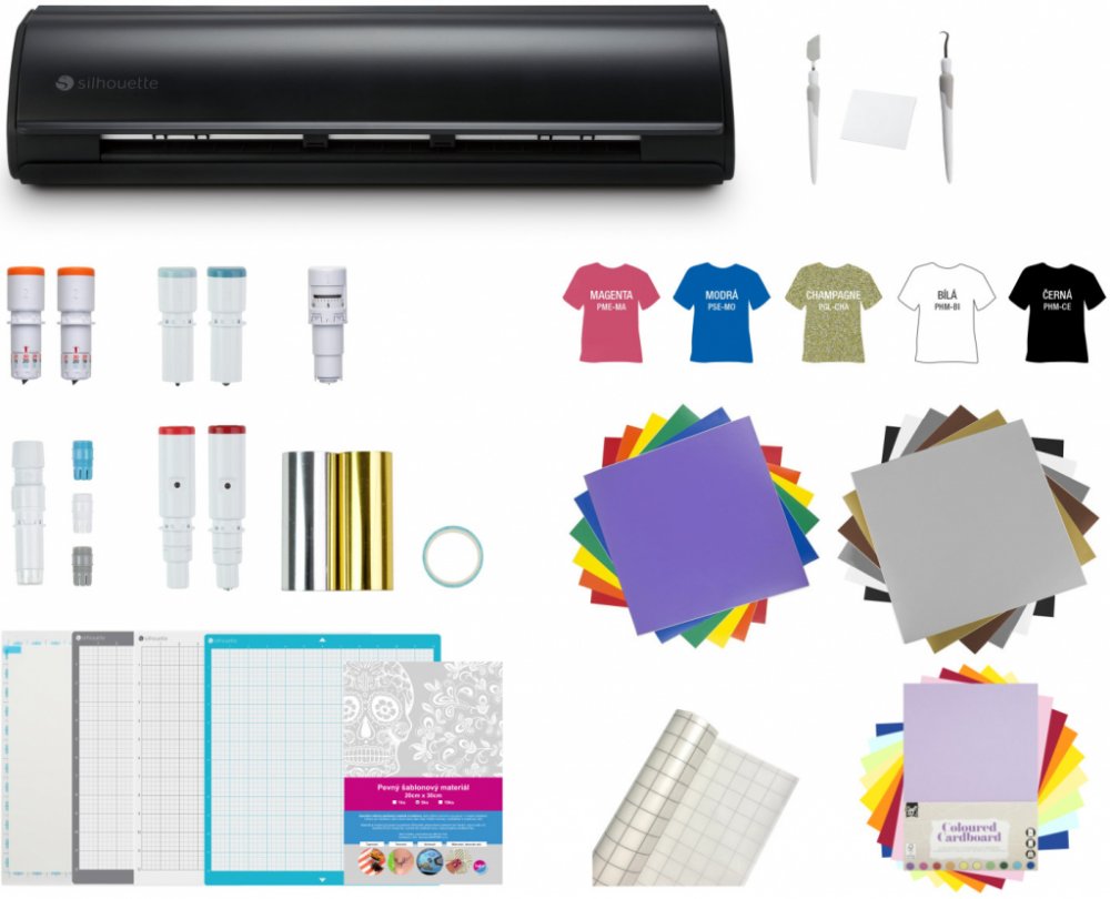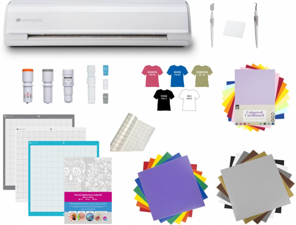 Mega set kombinuje sadu s kreativními materiály, sadu s noži a nářadím a rozšíření funkcí silhouette studia.