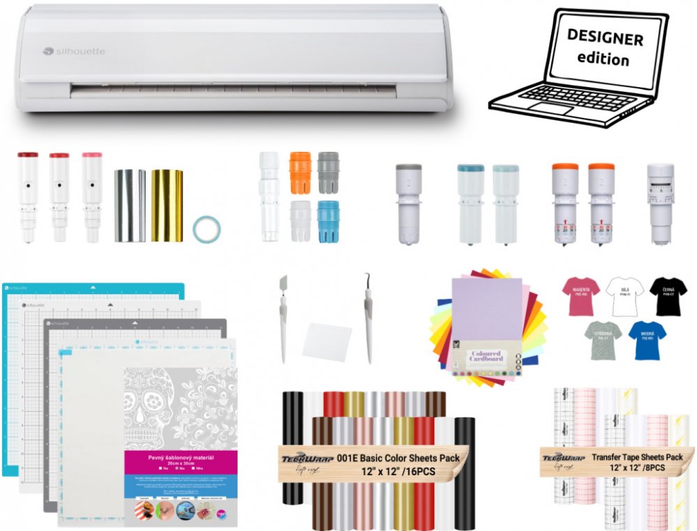 Nejen že budete mít kompletní sadu nástrojů pro Cameo5 pohromadě, ale rovnou se i budete moci pustit do řezání různých materiálů jako jsou samolepky, nažehlovačky či papíry. Designer edition Silhouette studia přináší pokročilé funkce pro kreslení, navrhování a úpravu grafiky, díky kterým můžete své projekty posunout na vyšší úroveň.