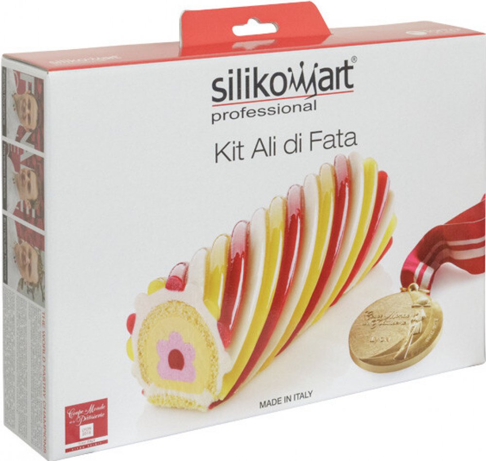 pod![CDATA[Firma Silikomart Professional byla vybrána vítězným italským týmem k navržení sady forem pro možnost přesné výroby vítězného ovocného zákusku ze světového poháru Coupe du Monde de la Pastisserie v Lionu v roce 2015. Sada Ali di Fata se skládá ze 7 částí: tří kombinovatelných silikonových forem pro vytvoření vložky s překvapivým efektem květinového motivu, silikonové podložky s vlnitým vzorem a základnou, pro vytvoření vícebarevných pásků různých příchutí. Základna může být také použita na výrobu piškotové části. Posledními součástmi jsou dvě plastové formy, pro usnadnění sestavení všech částí zákusku. Formy, kromě plastových částí, lze použít v troubě, šokeru i mikrovlnné troubě, v rozmezí teplot od -60°C do +230°C. Formy lze mýt ručně nebo v myčce na nádobí. Před použitím omyjte formu ve vodě.]]nad