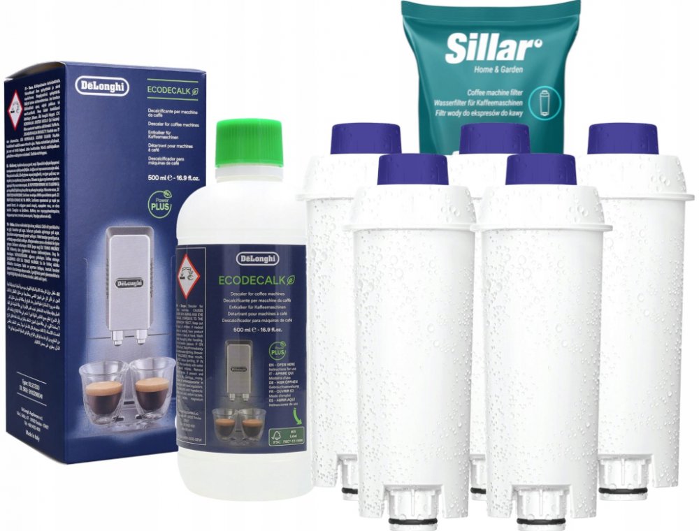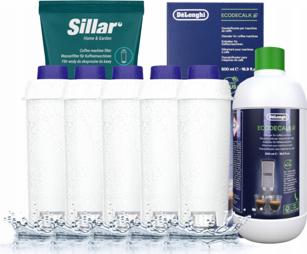 Sada pro kávovar Delonghi: 5x Sillar filtr na vodu + odvápňovač Delonghi DLSC500 500 ml