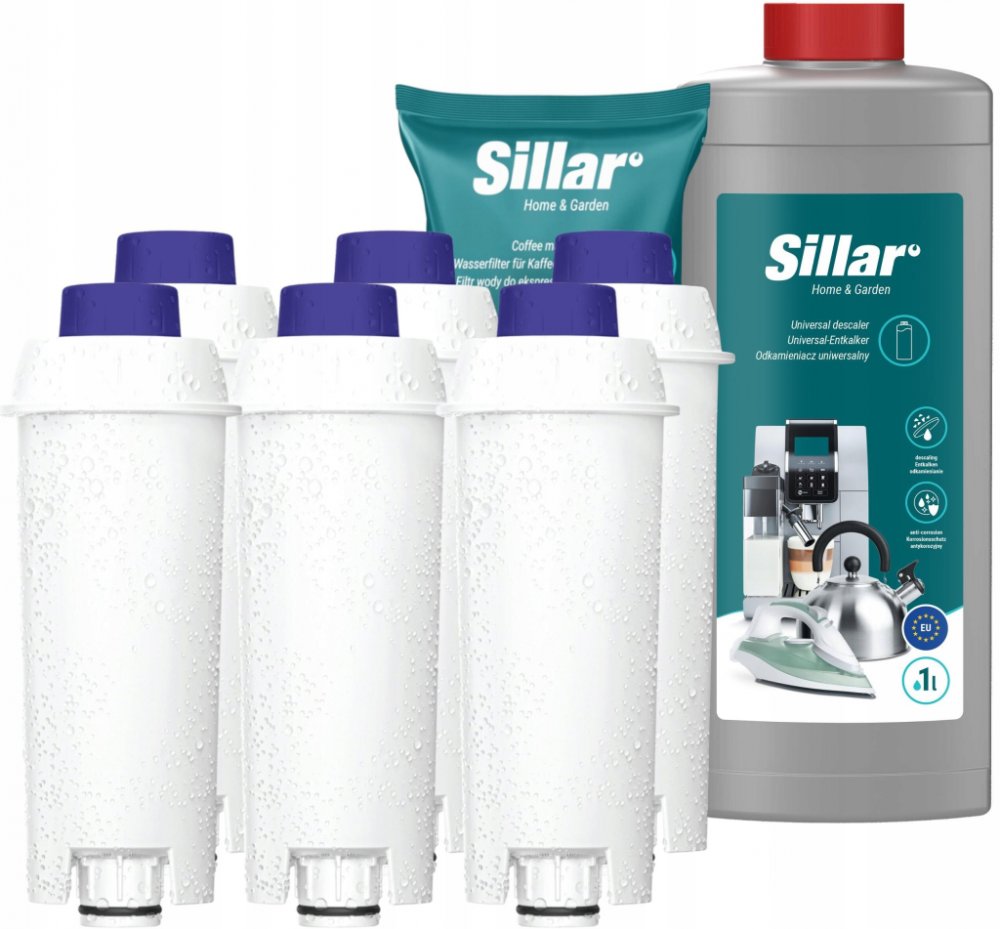 Sada Sillar pro kávovar Delonghi: 6 x filtr na vodu + odvápňovač 1 l