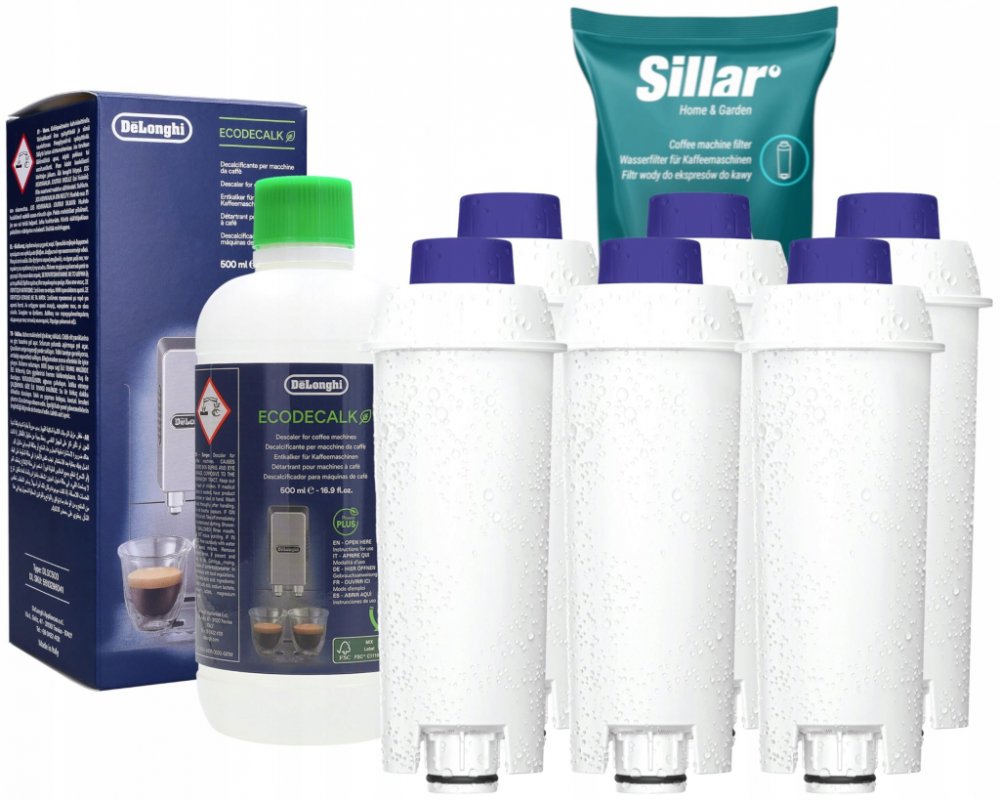 Sada pro kávovar Delonghi: 6 x Sillar filtr na vodu + odvápňovač Delonghi DLSC500 500 ml