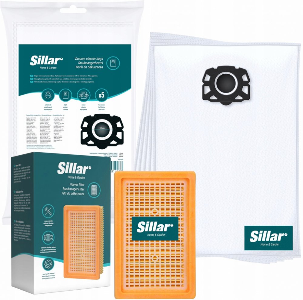 SADA SILLAR: 5 x SYNTETICKÉ SÁČKY SIL1020 + VZDUCHOVÝ FILTR SIL1240 PRO VYSAVAČE KARCHER